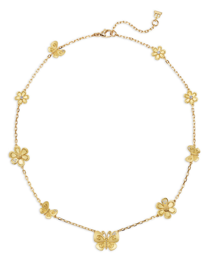 18K Yellow Gold FJ Diamond Butterfly & Flower Collar Necklace, 16-18'