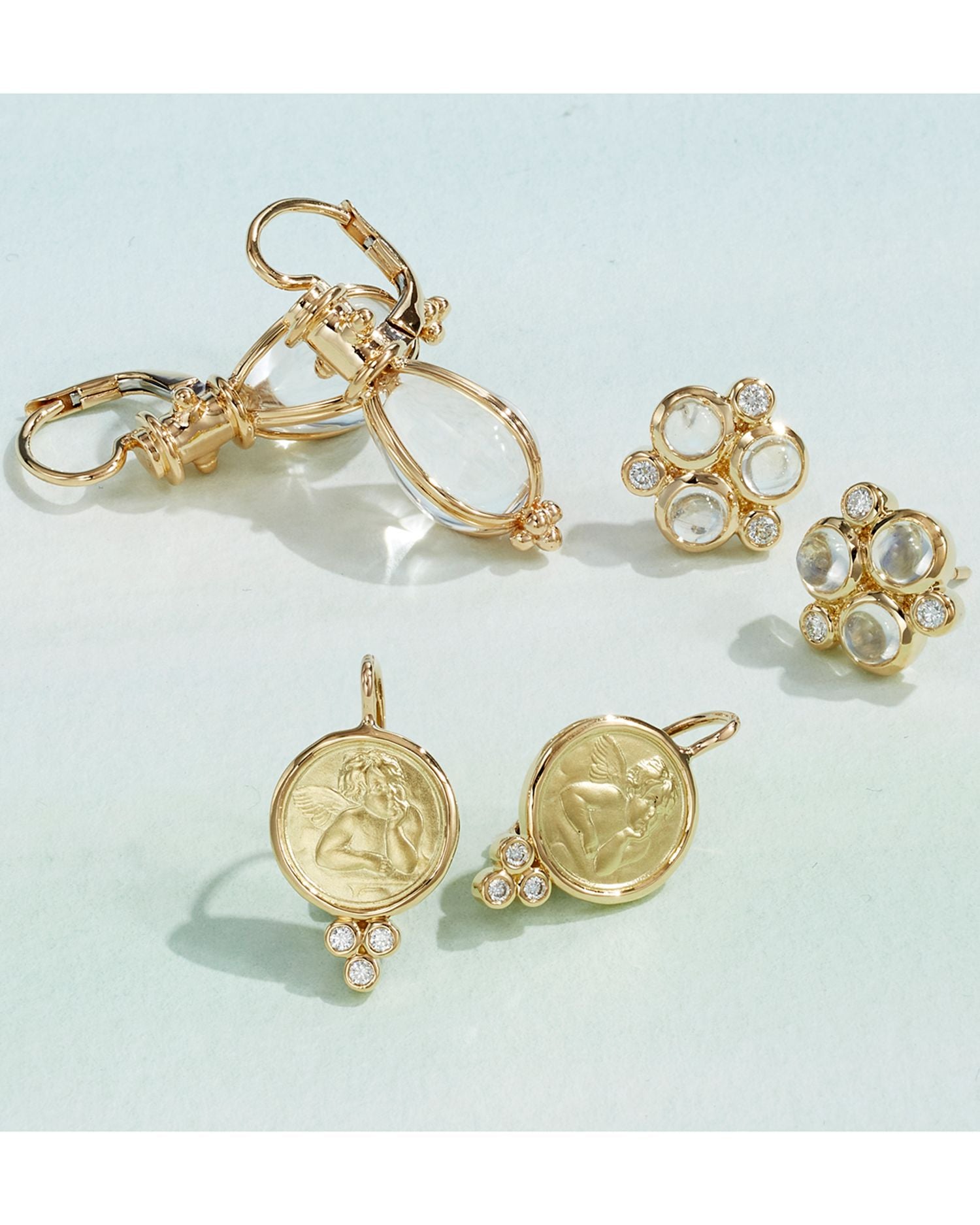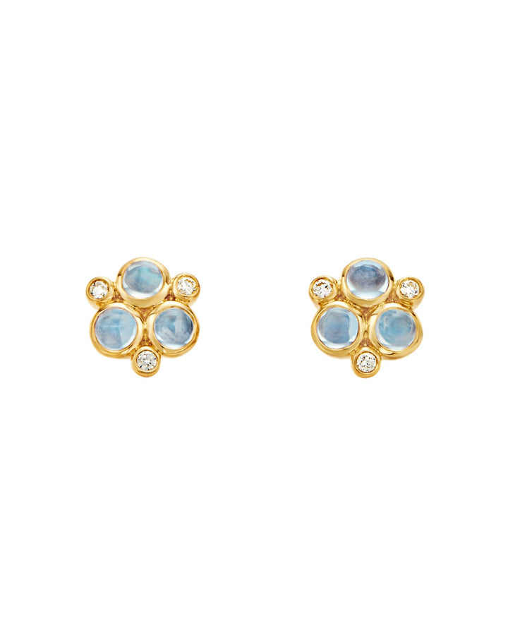 Temple St. Clair Classic Trio Earrings with Royal Blue Moonstone and Diamonds in 18K Yellow Gold