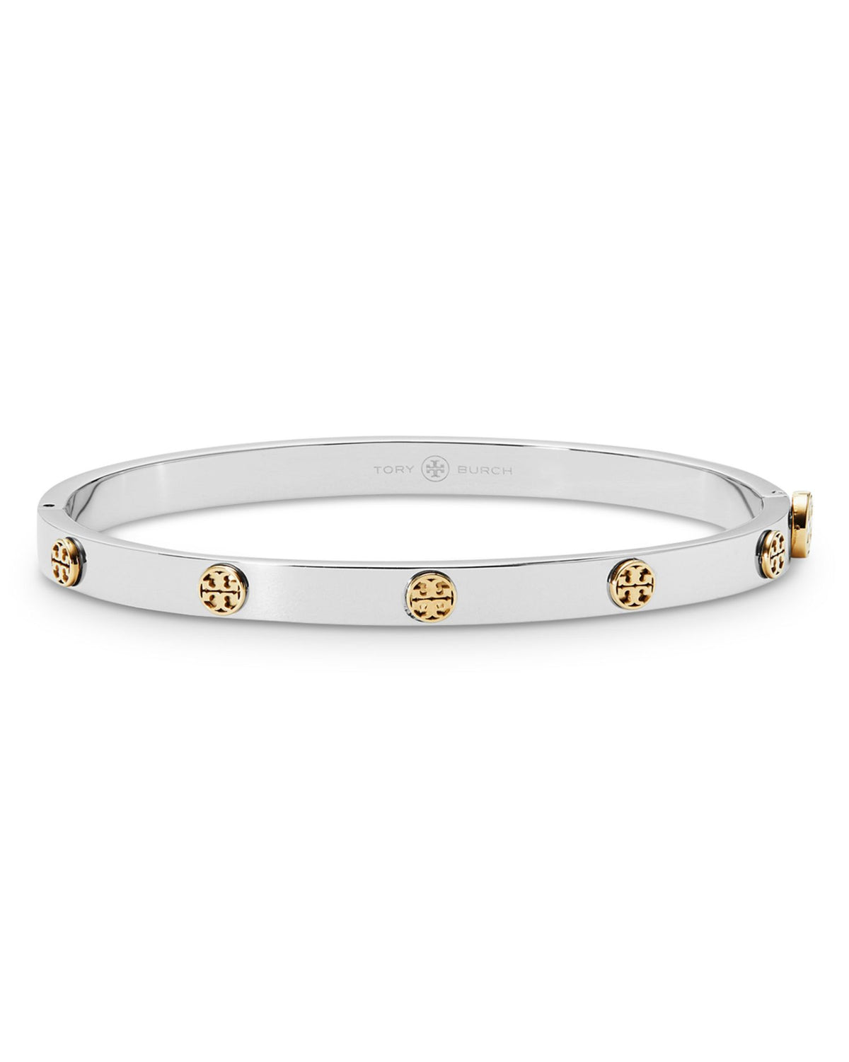 This Miller Logo Studded Bangle Bracelet by Tory Burch brings a modern, polished touch to your accessory collection. Featuring the iconic Miller logo and sleek studded details, this bangle is perfect for stacking or wearing solo to elevate everyday style.