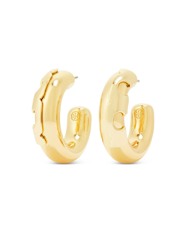 These Essential Hoop Earrings by Tory Burch offer timeless versatility and sophistication. From the Essential collection, these hoops feature a sleek gold-plated or silver-tone finish, making them ideal for any occasion. A must-have addition to your jewelry wardrobe.