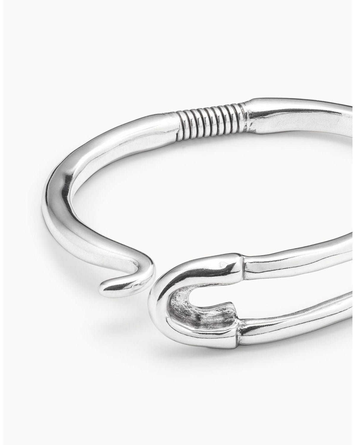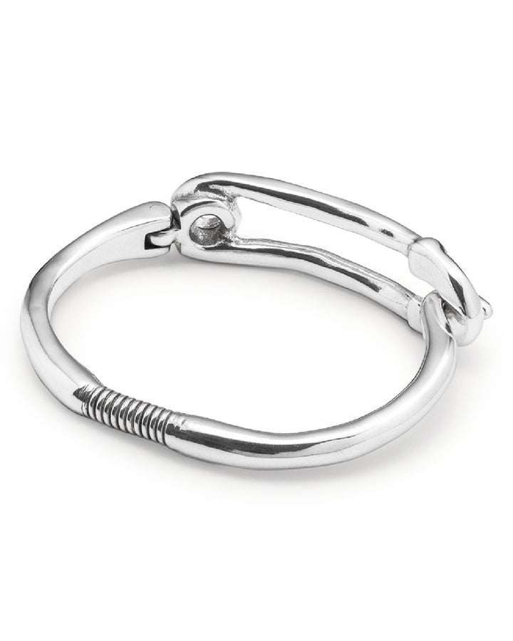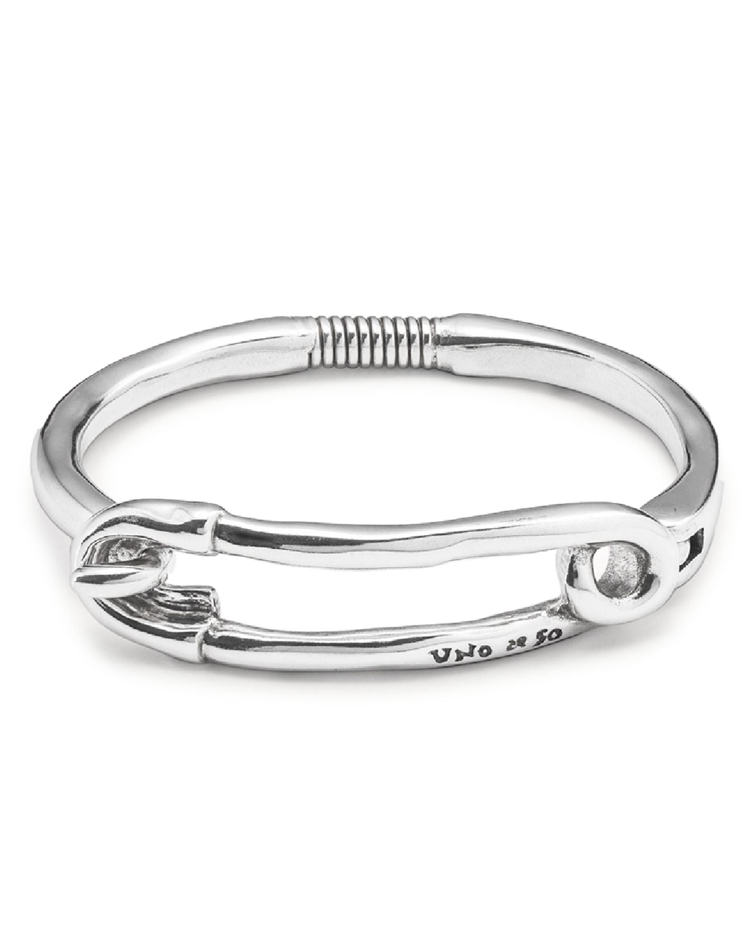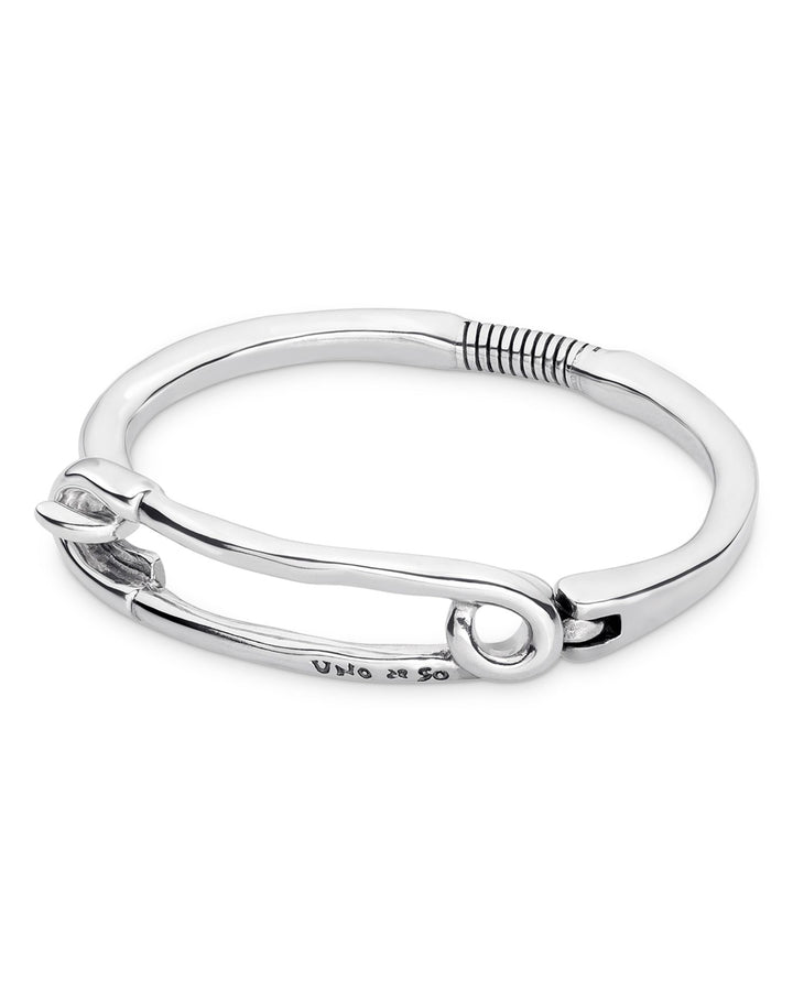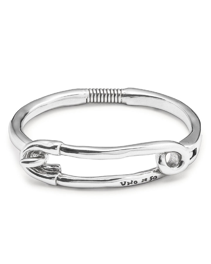 This Infinite Safety Pin Bangle Bracelet by UNOde50 is a bold, contemporary statement piece. From the Infinite collection, this silver-plated bangle features a safety pin-inspired design, combining edgy style with artisanal craftsmanship.