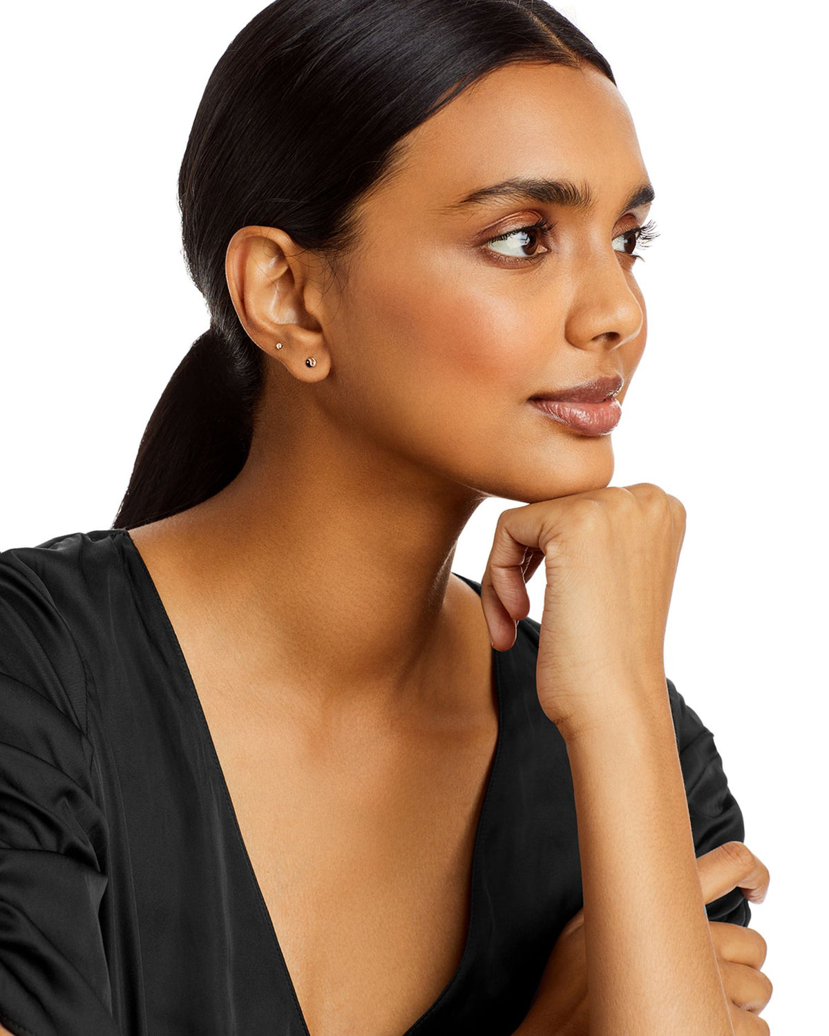 Crafted in 14K yellow gold. Earring measures 4mm long and features a post back closure. Sold as a single earring. Made in the USA.