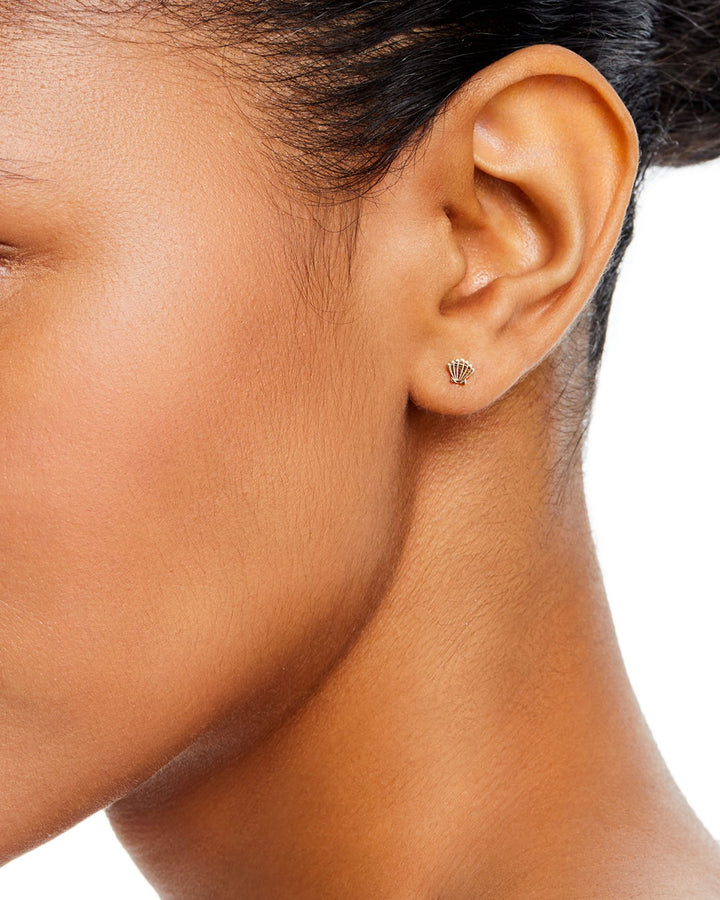 This 14K Yellow Gold Itty Bitty Symbols Shell Single Stud Earring by Zoë Chicco brings a beach-inspired motif to your everyday look. A polished gold shell design makes this single stud a playful and minimalist addition to any ear stack.