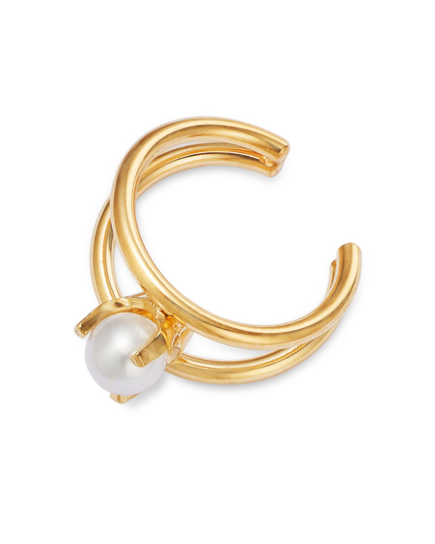 14K Yellow Gold Nested Prong Cultured Freshwater Pearl Double Wire Ear Cuff