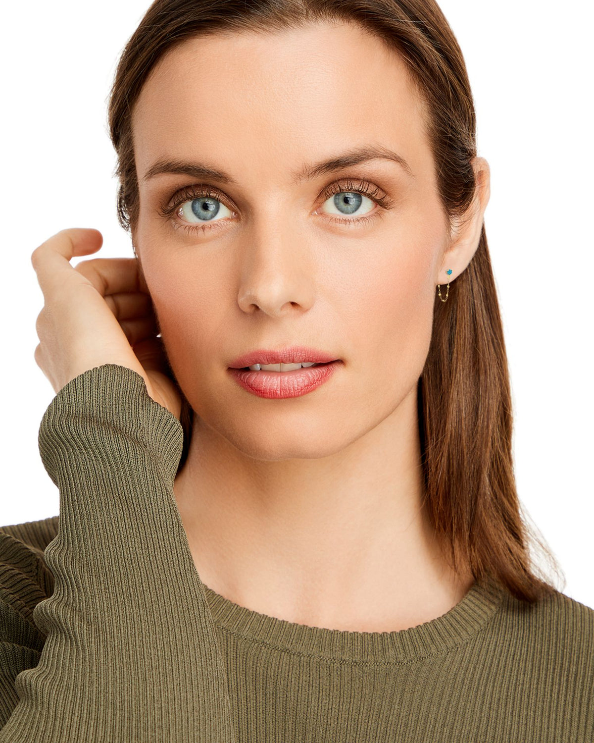 Crafted in 14K gold with turquoise (2.5mm). Earrings measure 0.9' L and feature a post back closure. Made in the USA.