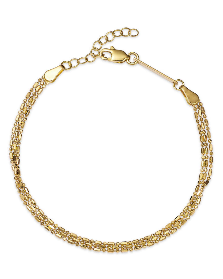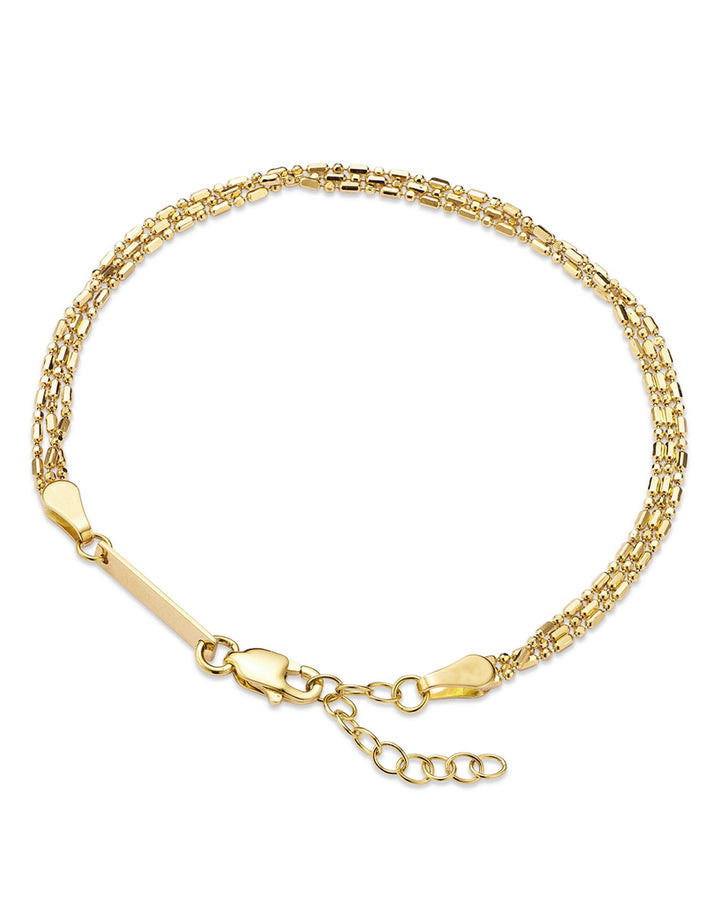 Handcrafted in 14K yellow gold. Bracelet measures 6-7" L and features a lobster clasp closure. Made in the USA.