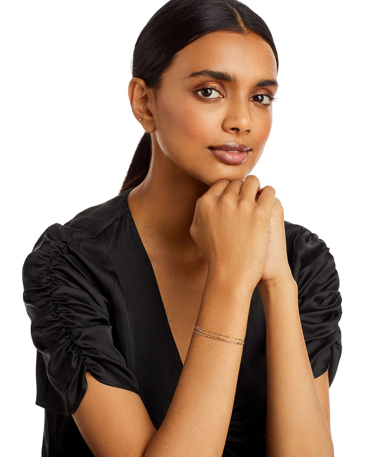 This 14K Yellow Gold Simple Gold Beaded Bracelet by Zoë Chicco brings dynamic shine to your wrist. From the Simple Gold collection, three strands of polished gold tubes and beads create a refined yet playful design that’s perfect for layering.