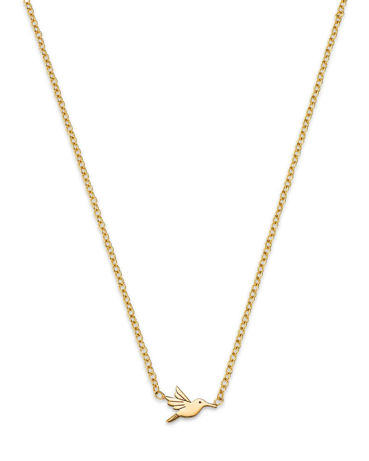 14K Yellow Gold Itty Bitty Symbols Hummingbird Pendant Necklace, 14-16'
