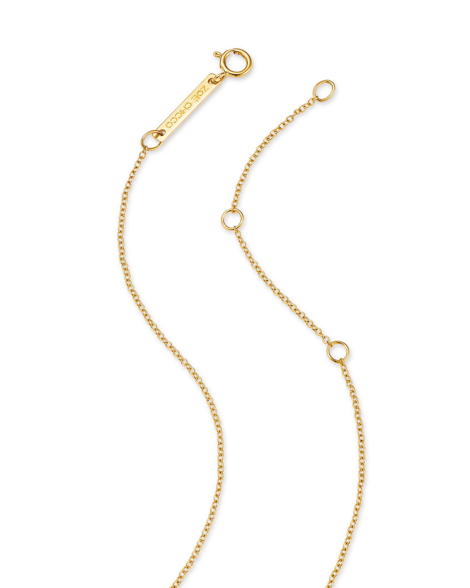 This 14K Yellow Gold Itty Bitty Symbols Hummingbird Pendant Necklace, 14-16' by Zoë Chicco is a delicate and whimsical addition to your collection. From the Itty Bitty Symbols collection, a finely detailed hummingbird pendant adds a graceful and playful charm to a yellow gold link chain.