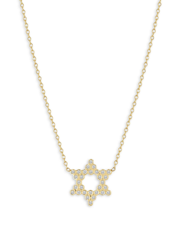 This 14K Yellow Gold Diamond Bezel Star of David Pendant Necklace, 14-16' by Zoë Chicco is a meaningful and elegant piece. From the Bezel Diamonds collection, bezel-set diamonds form a radiant Star of David pendant, perfect for everyday wear or special occasions.