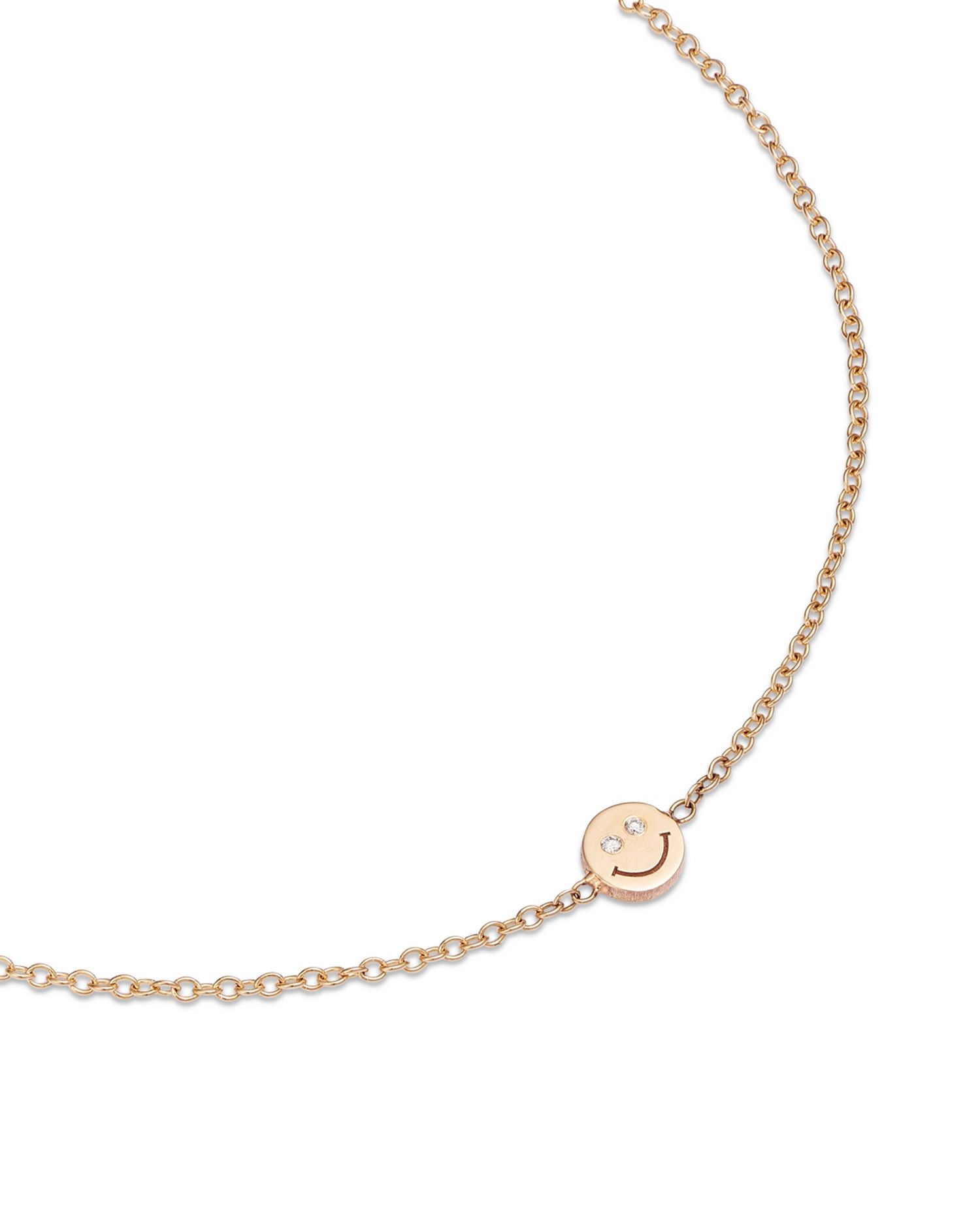 14K Yellow Gold Itty Bitty Smiley Face Diamond Eyes Bracelet