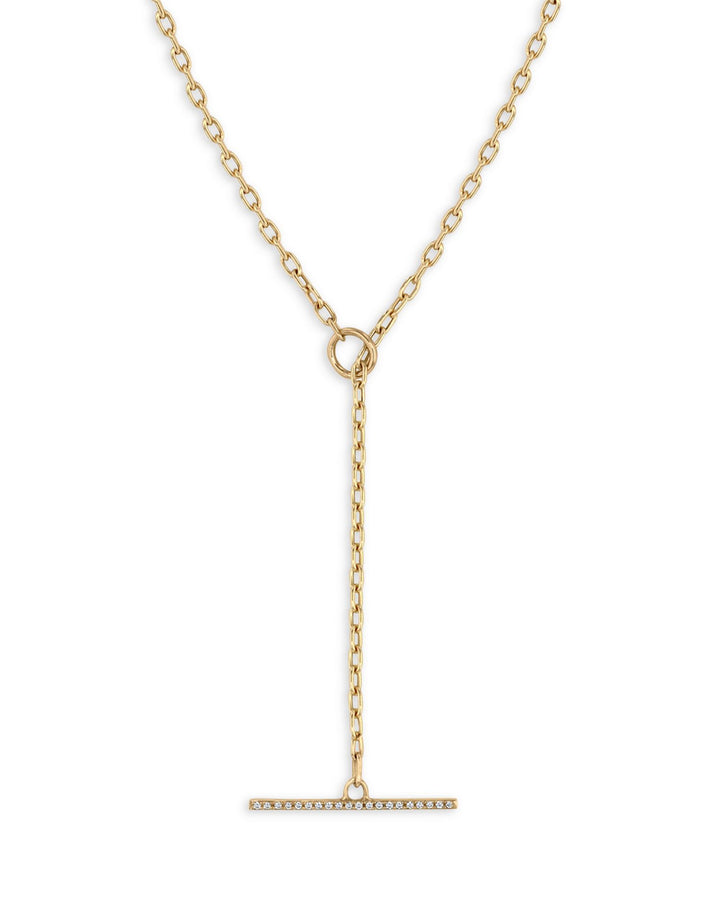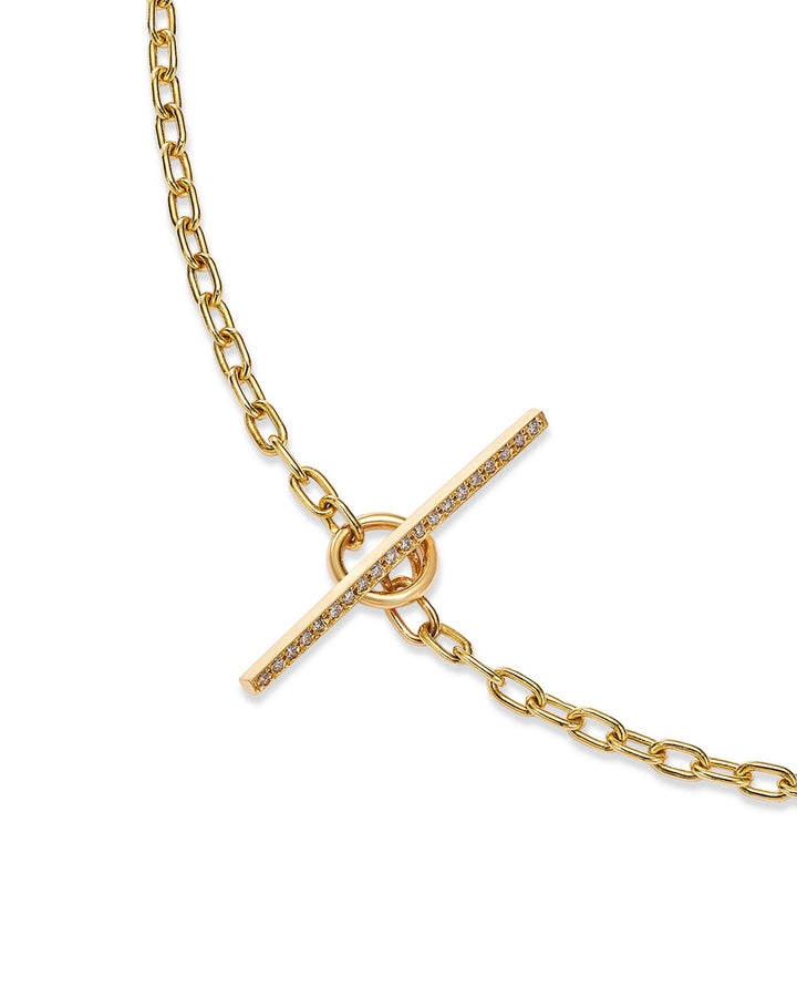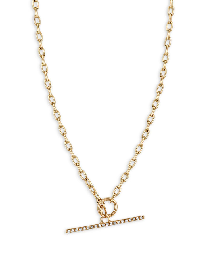 This 14K Yellow Gold Heavy Metal Diamond Pavé Toggle Bar Oval Link Chain Necklace, 17' by Zoë Chicco redefines classic elegance. The timeless oval link chain is elevated with a sparkling diamond pavé toggle closure for a modern, luxurious finish.