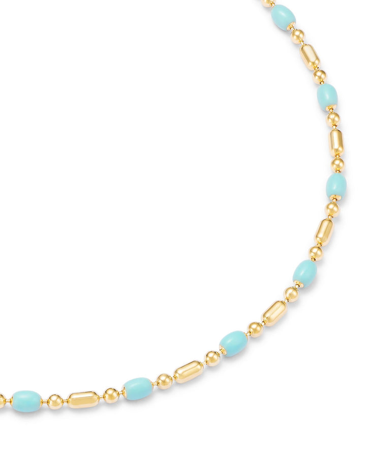 Handcrafted in 14K yellow gold with turquoise-colored enamel beads. Length: 6-7 inches. Secured with a lobster clasp closure. Made in the USA.