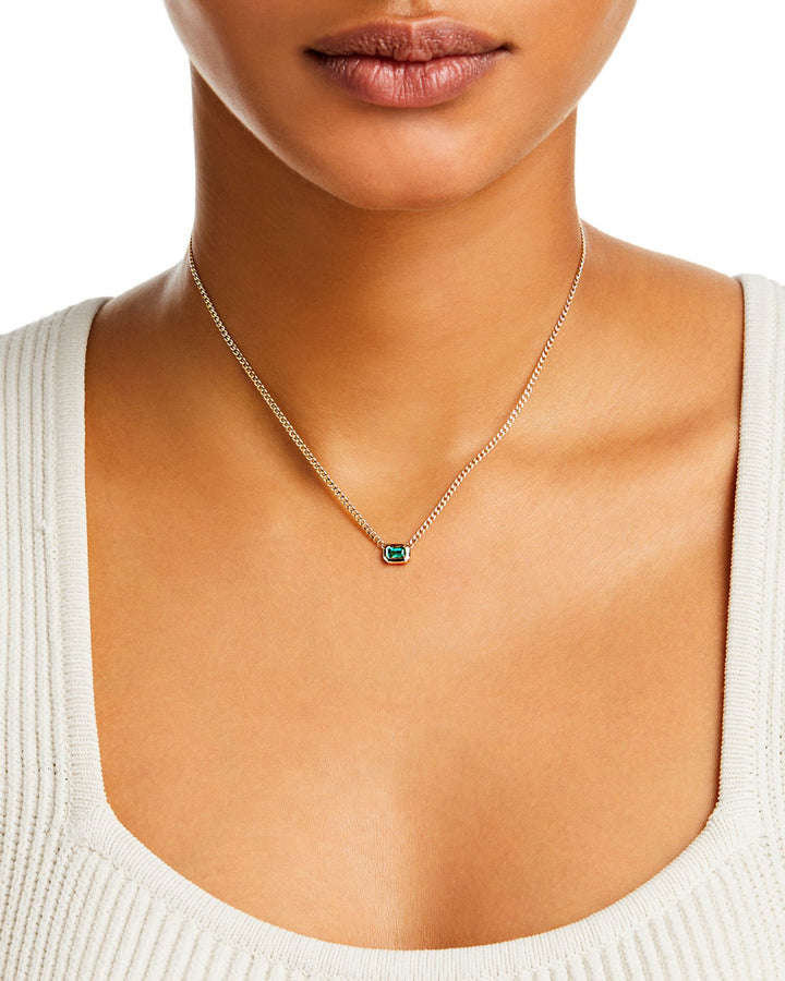This 14K Yellow Gold Emerald Gemstones Bezel Pendant Necklace by Zoë Chicco adds vibrant green shine to your jewelry wardrobe. From the Emerald Gemstones Collection, the rich color of the emerald is showcased in a sleek bezel setting. A timeless piece, this necklace’s vibrant emerald gemstone makes a bold yet refined statement.