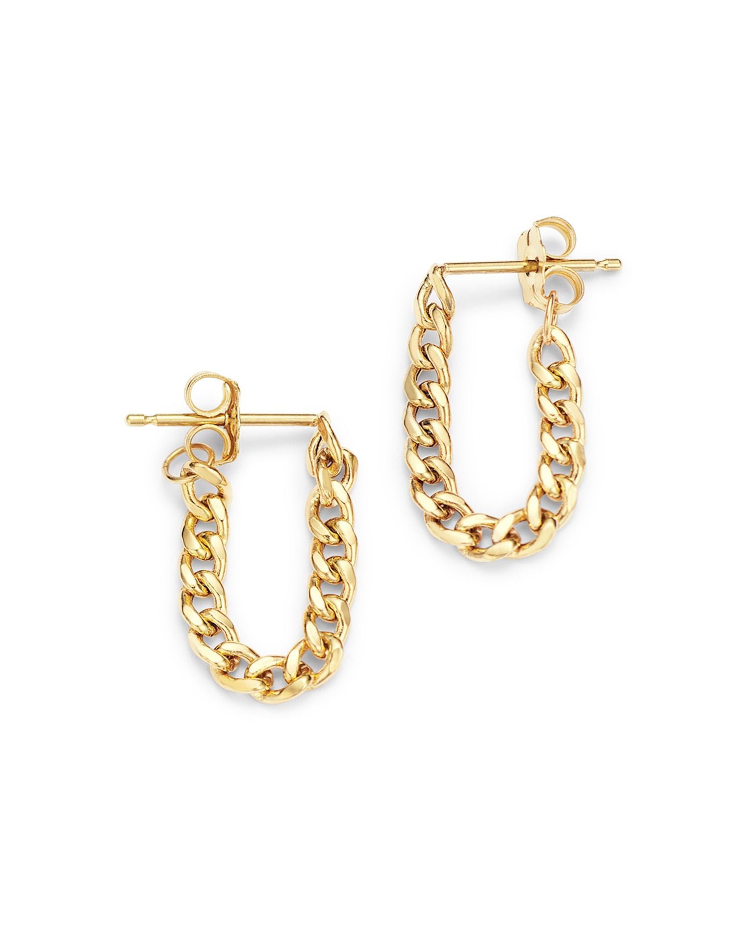 14K Yellow Gold Heavy Metal Small Curb Link Chain Hoop Earrings