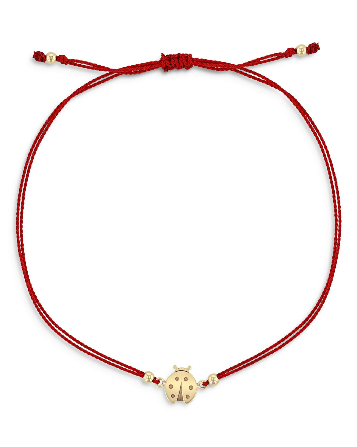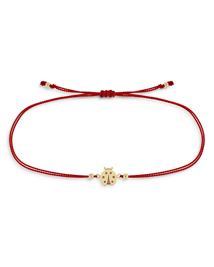 14K Yellow Gold Midi Bitty Ladybug Red Cord Bracelet