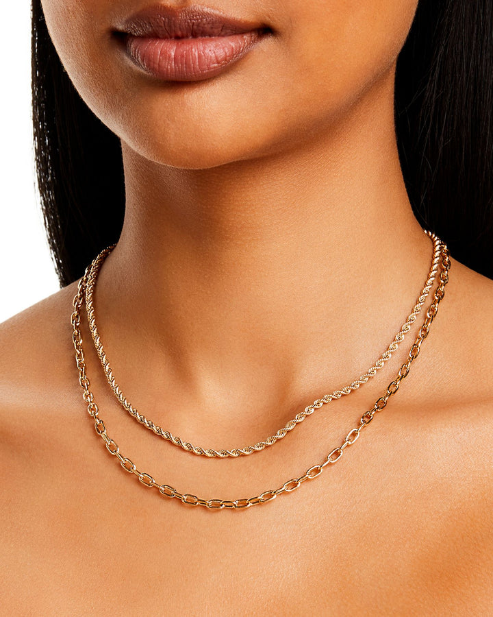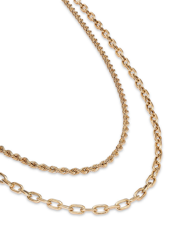 14K Yellow Gold Heavy Metal Layered Necklace, 16 & 18'