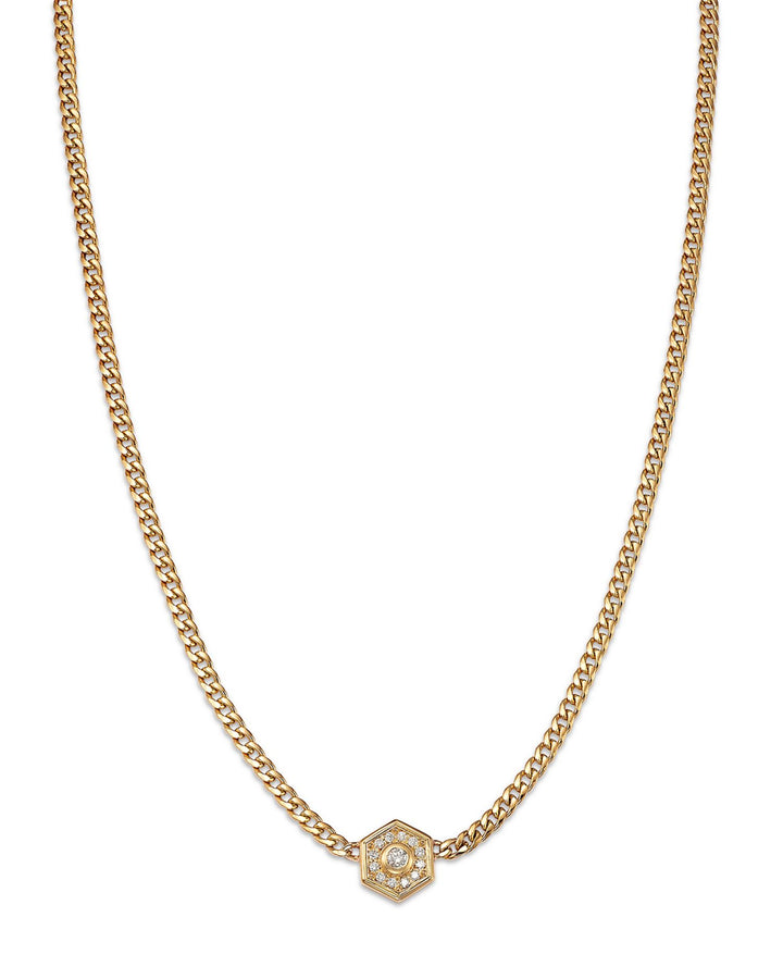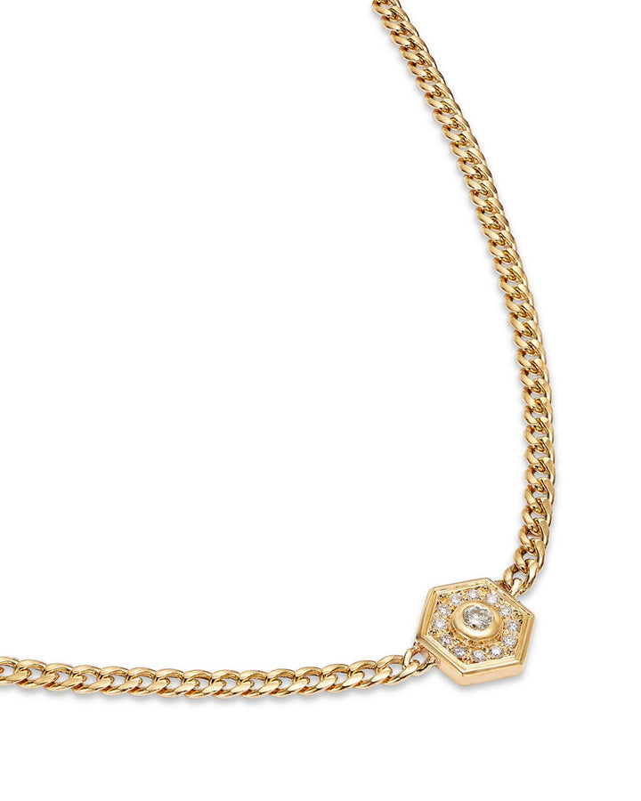 14K Yellow Gold Paris Diamond Hexagon Collar Necklace, 16-18'