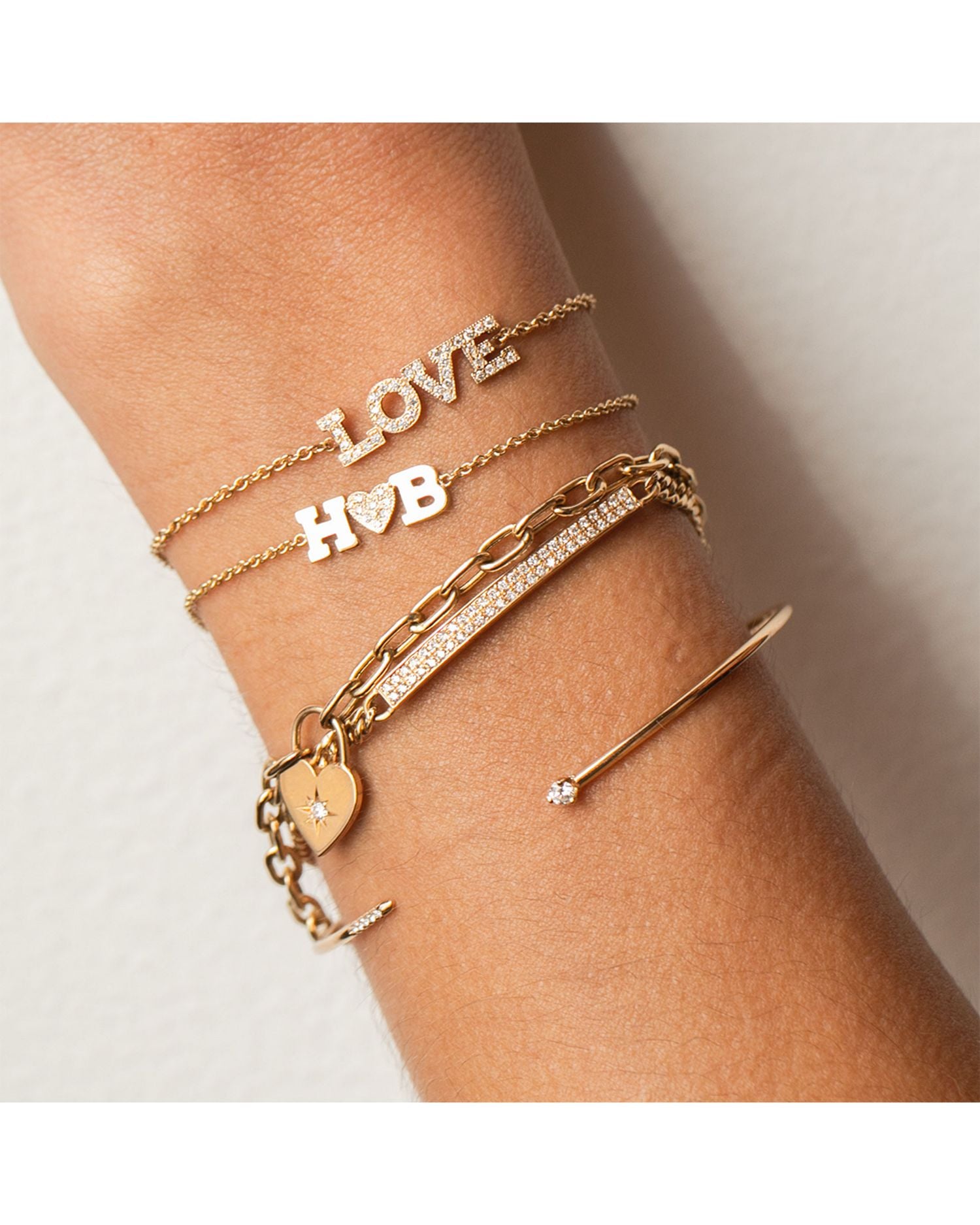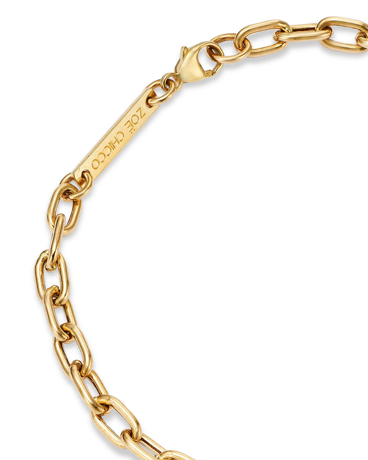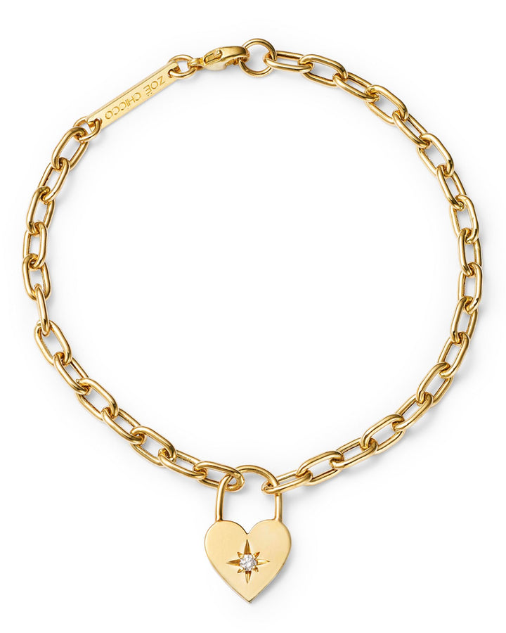 This 14K Yellow Gold Lockets, Padlocks & Dog Tags Diamond Heart Charm Link Bracelet by Zoë Chicco from the Lockets, Padlocks & Dog Tags Collection showcases a diamond-accented heart padlock on an open link chain bracelet. The romantic charm adds a personal touch to any outfit, offering a perfect balance of elegance and sentiment.