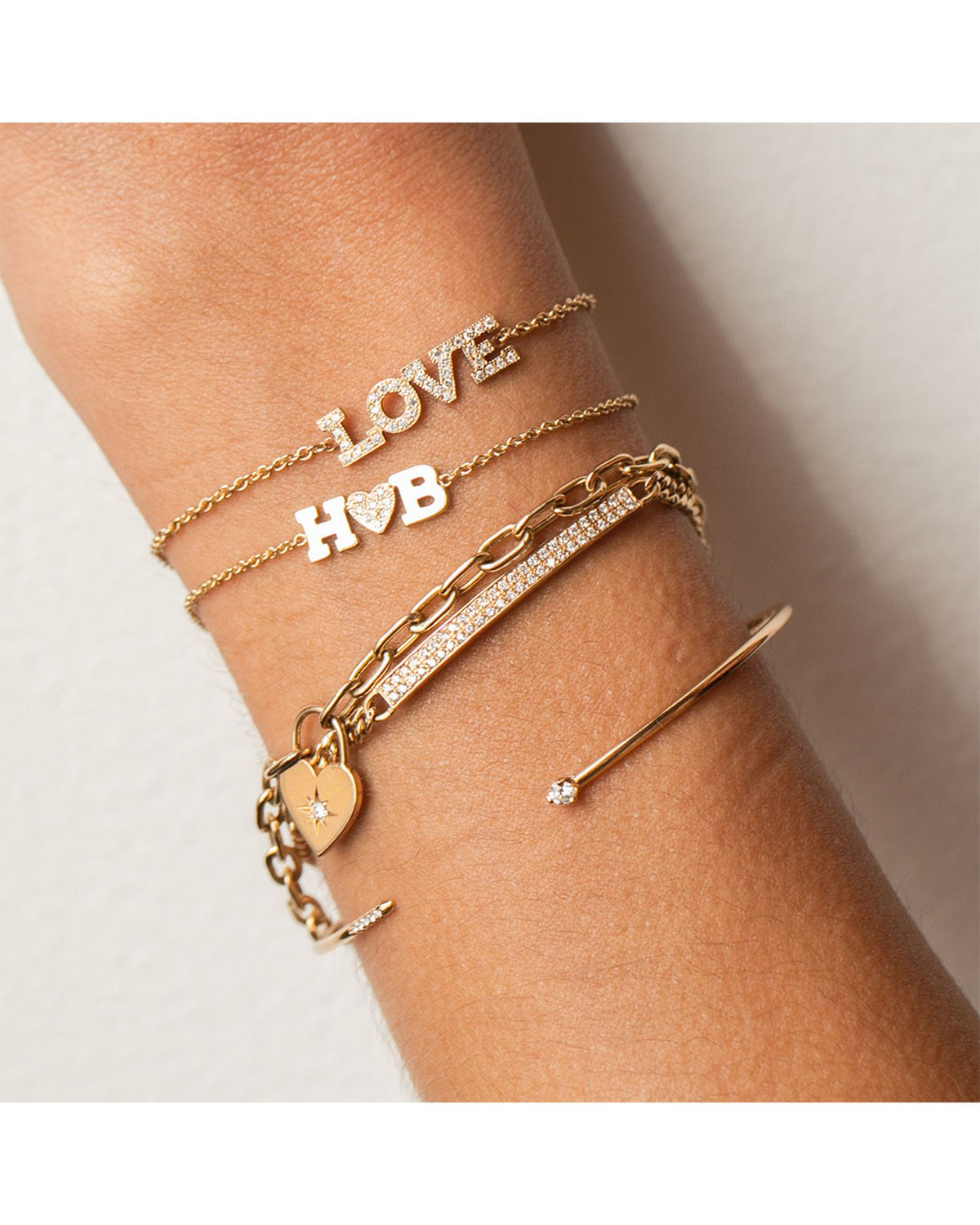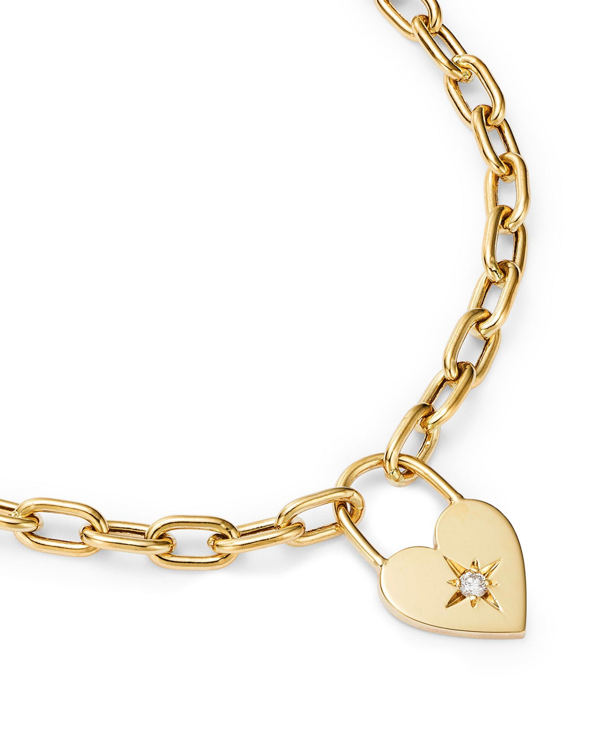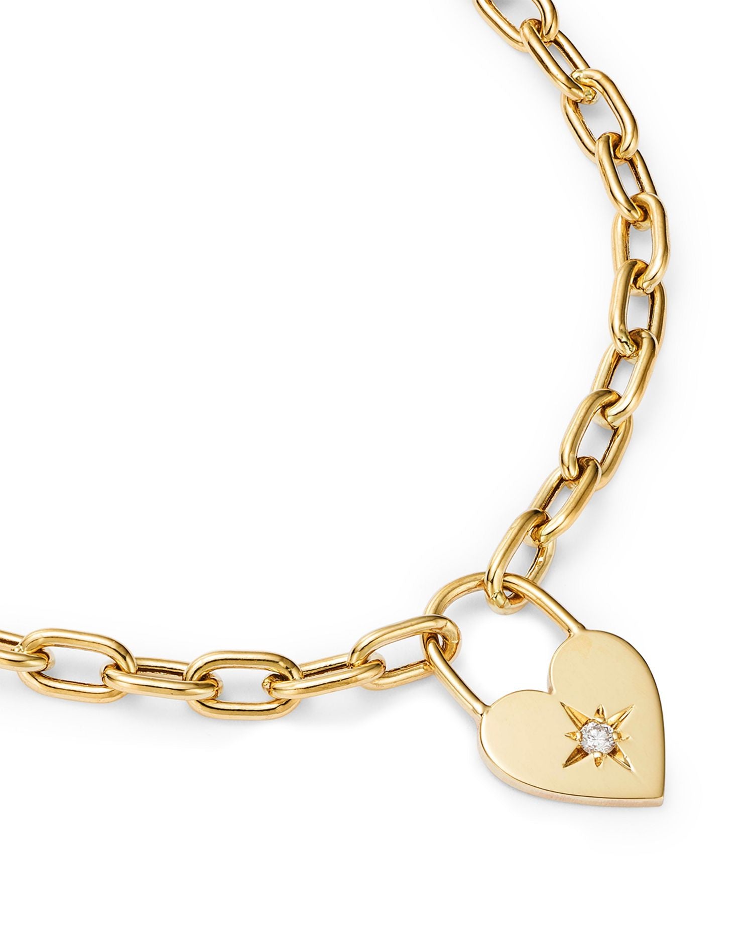 14K Yellow Gold Lockets, Padlocks & Dog Tags Diamond Heart Charm Link Bracelet