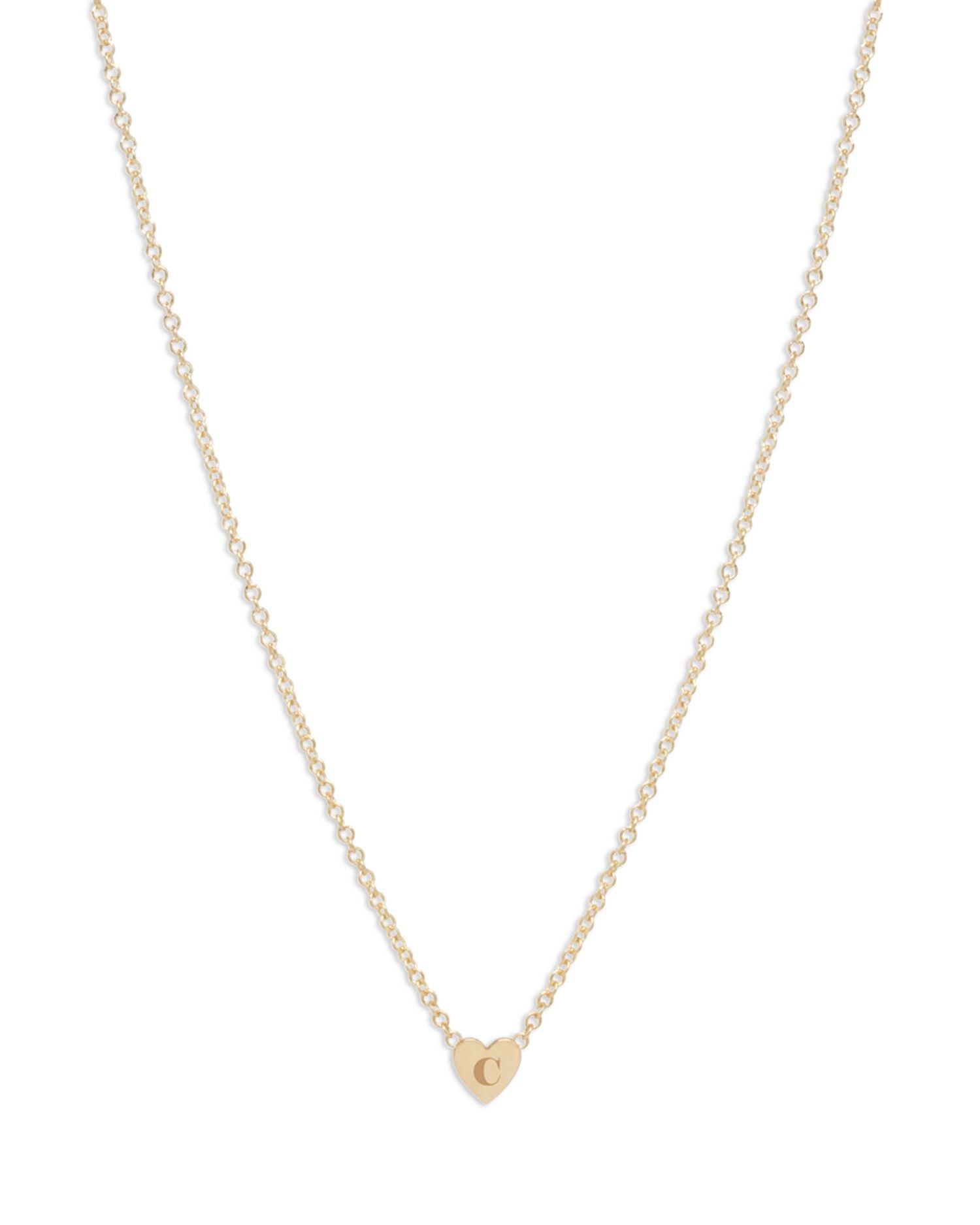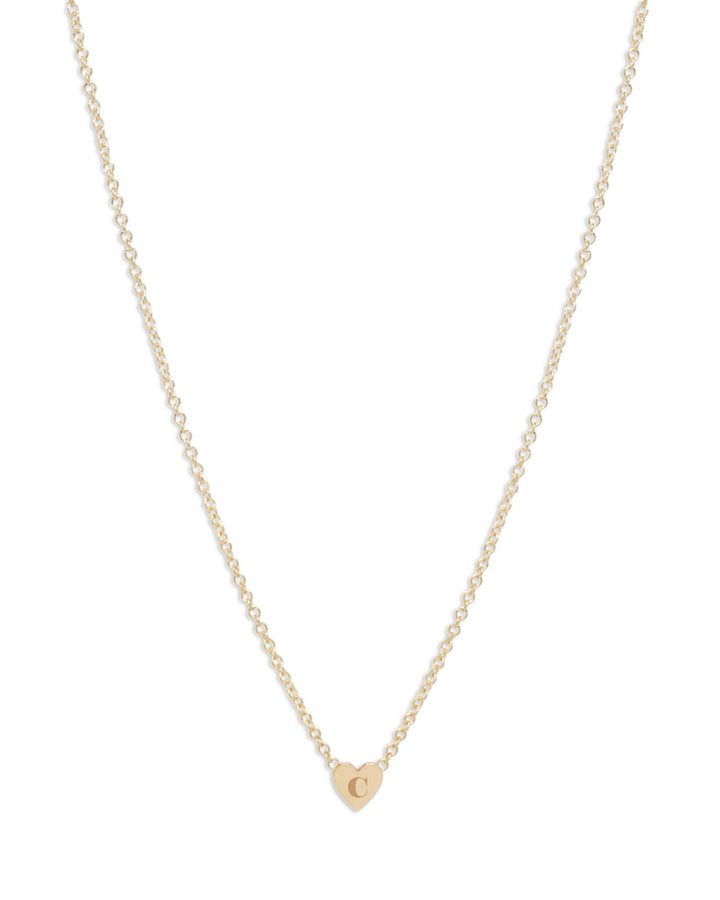 14K Yellow Gold Tiny Heart Initial Necklace, 18'