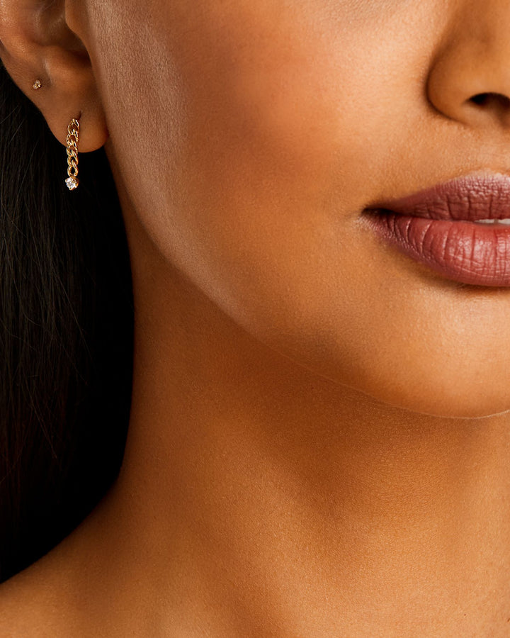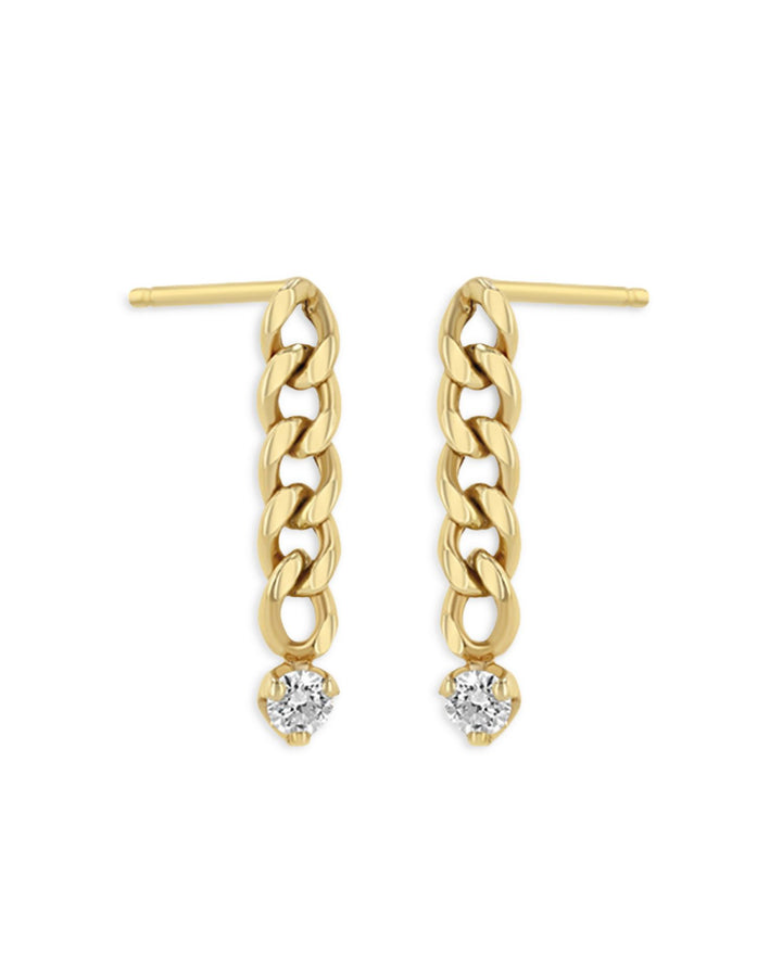 14K Yellow Gold Prong Diamonds Diamond Curb Link Chain Drop Earrings