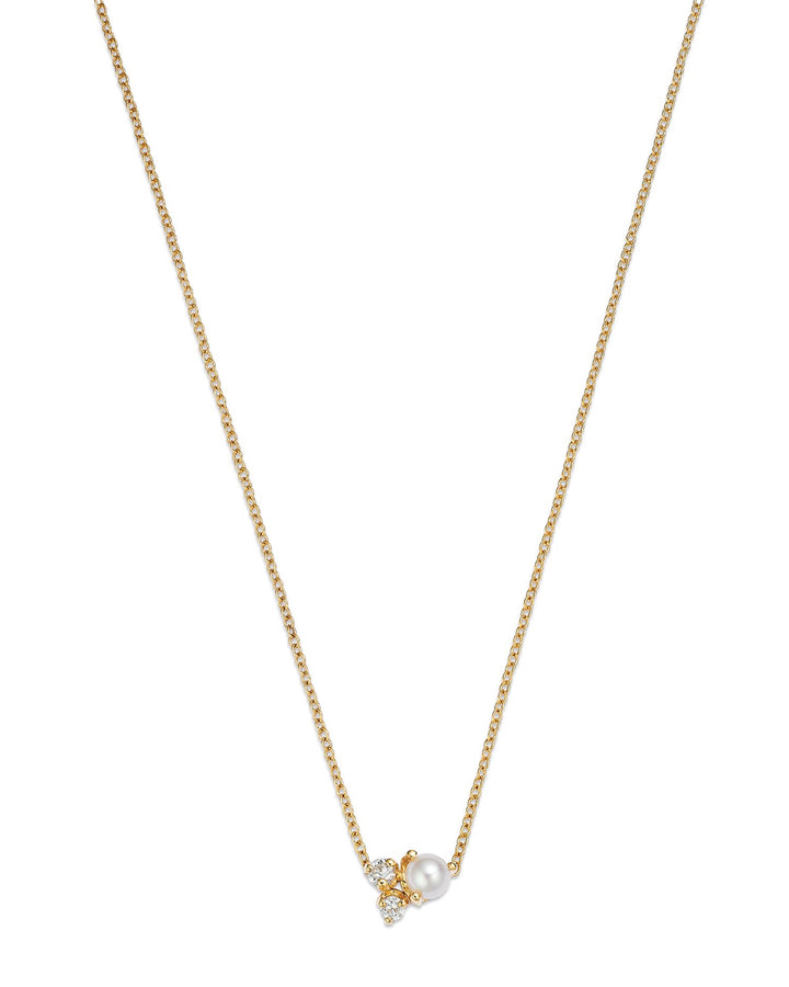 14k Yellow Gold Mixed Prong Diamond & Cultured Pearl Cluster Necklace, 14-16'