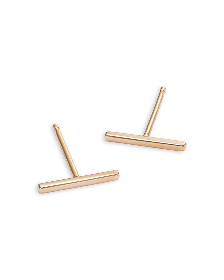 14K Yellow Gold Gold Bars Thin Bar Stud Earrings