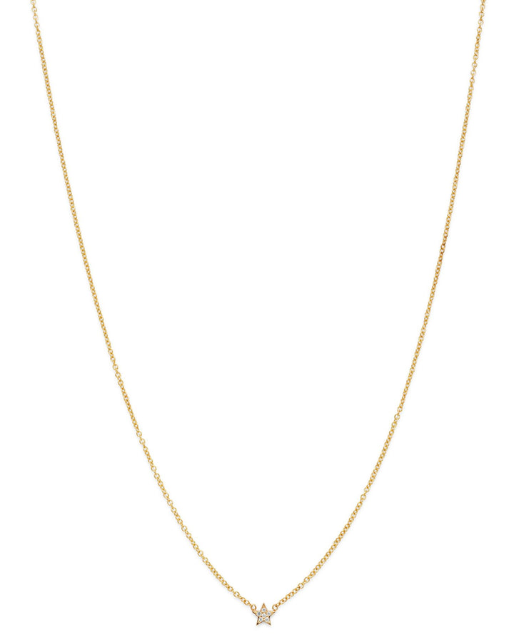 14K Yellow Gold Itty Bitty Diamond Star Pendant Necklace, 16'