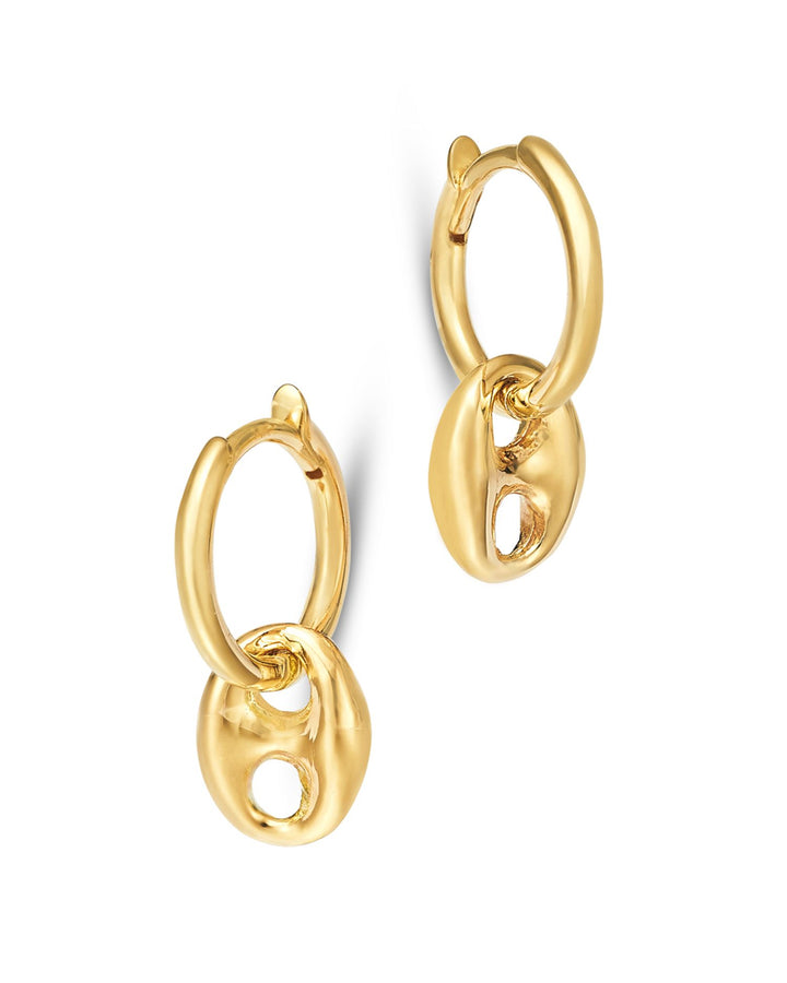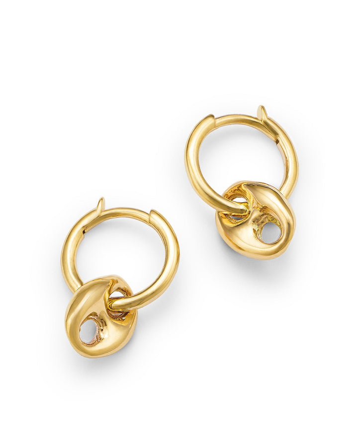 14K Yellow Gold Heavy Metal Mariner Link Dangle Small Huggie Hoop Earrings