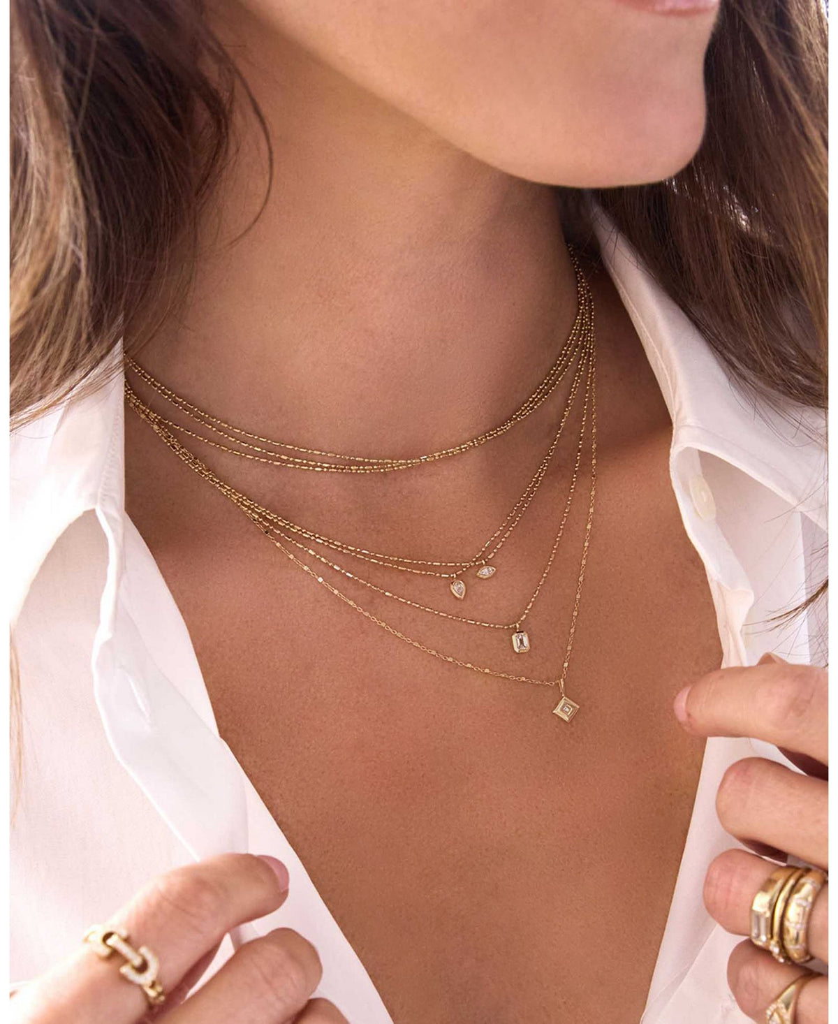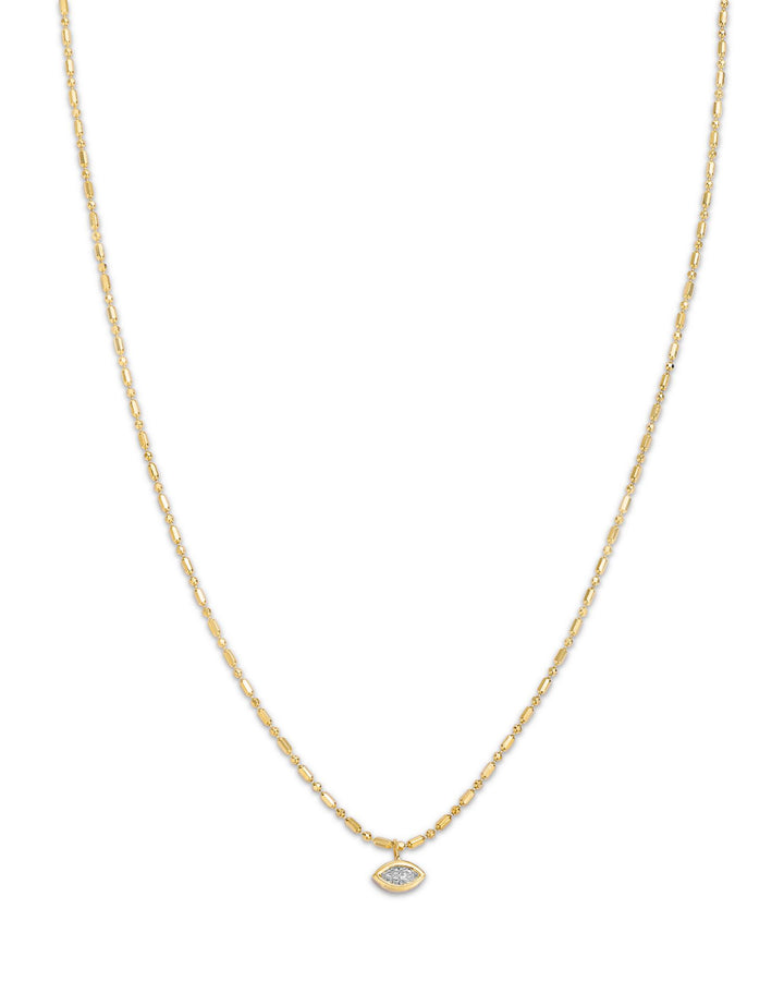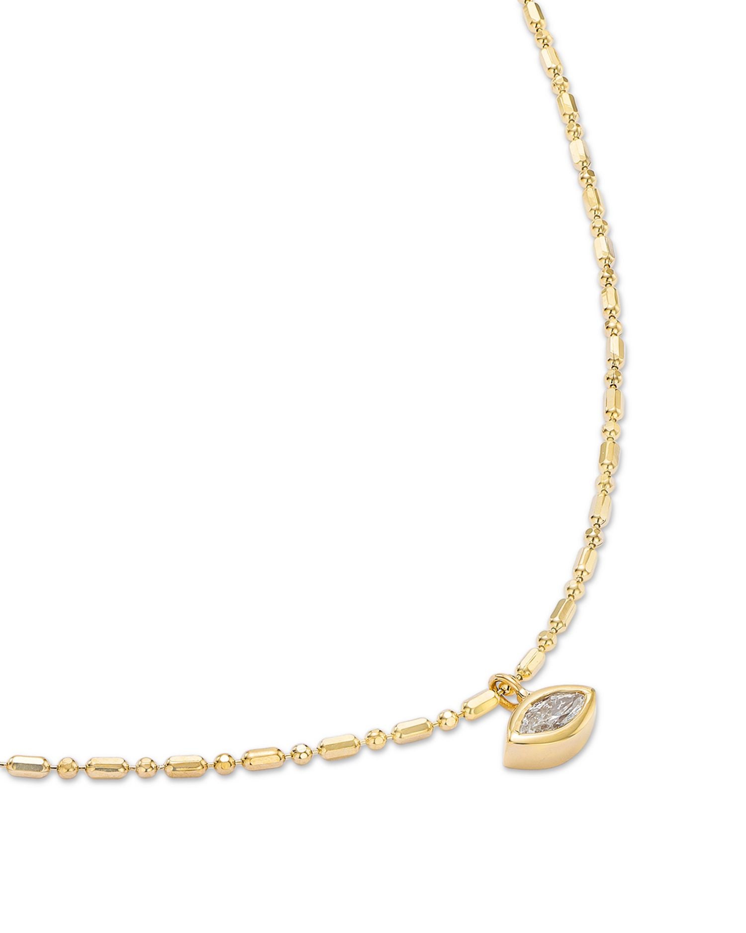 This 14K Yellow Gold Paris Diamond Marquis Bezel Pendant Necklace by Zoë Chicco from the Paris Collection features a small bezel-set marquis diamond that floats on a polished bead chain. A simple and elegant design that makes a chic statement, perfect for everyday wear.