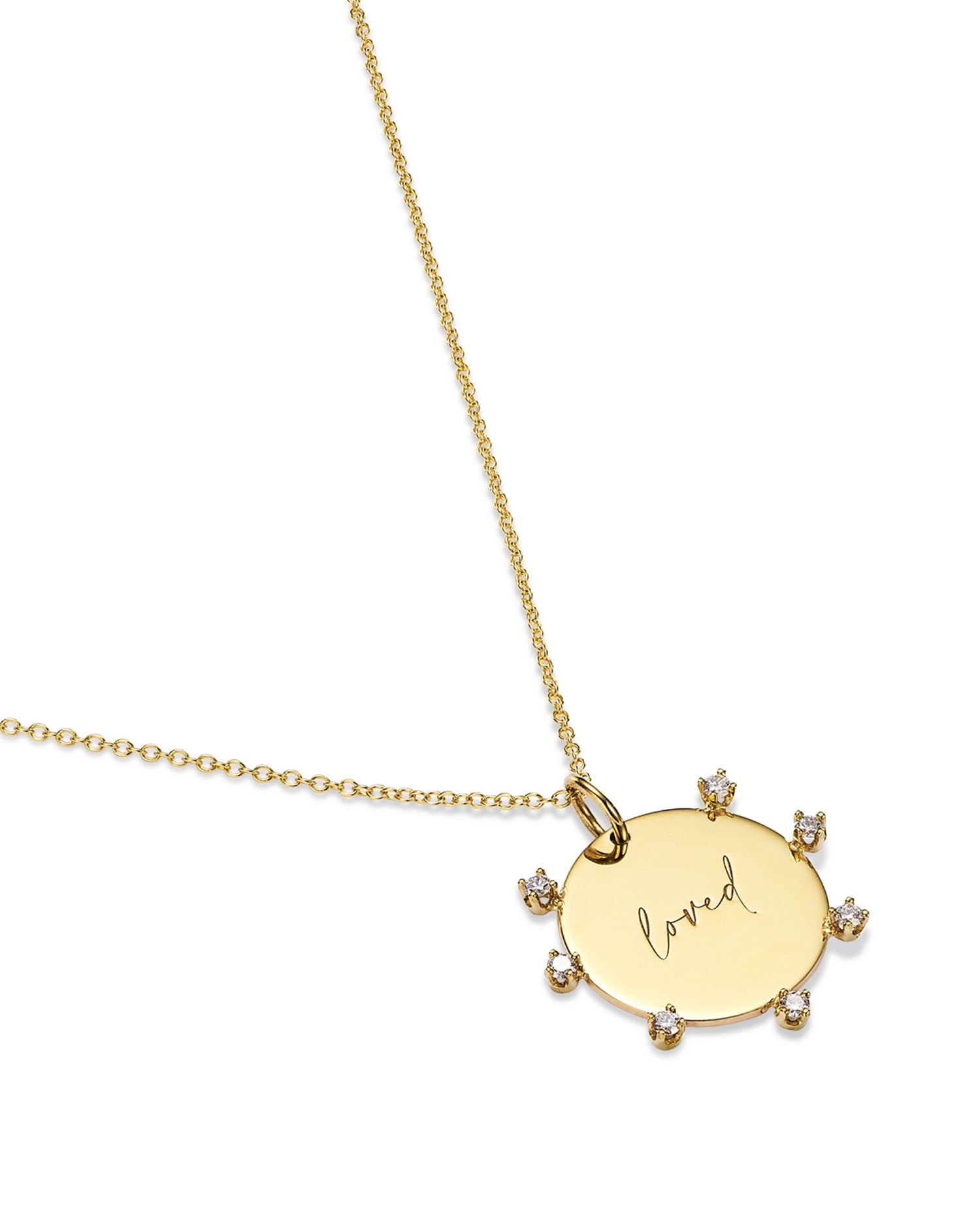 14K Yellow Gold Tender Tokens Diamond 'Loved' Disc Pendant Necklace, 16-18'