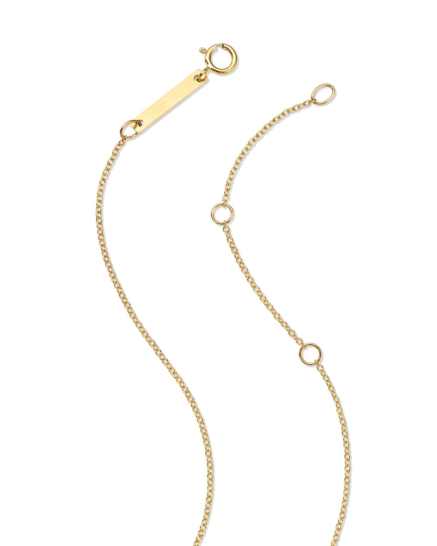 Handcrafted in 14K yellow gold with diamonds totaling 0.147 ct. t.w. (color/clarity: FG/SI2). Adjustable chain length: 16-18 inches; Pendant length: 0.79 inches. Secured with a spring ring clasp closure. All gemstone carat weights (ct. t.w.) are approximate with a variance of 0.05 carat. Made in the USA.
