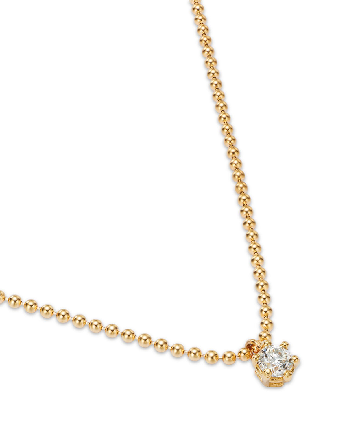 This 14K Yellow Gold Diamond Solitaire Necklace by Zoë Chicco from the Prong Diamonds Collection features an elegant prong-set diamond solitaire suspended on a delicate gold bead chain. A timeless and sophisticated piece, it’s perfect for daily wear or special occasions.