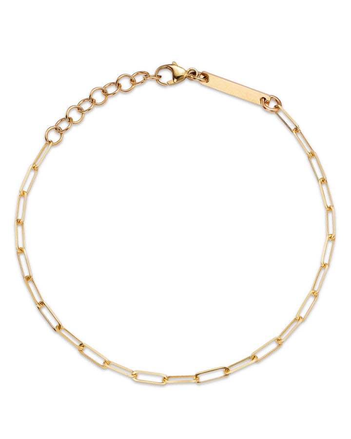 14K Yellow Gold Simple Gold Paperclip Link Chain Bracelet