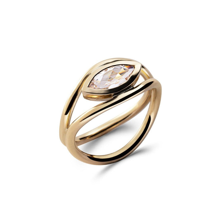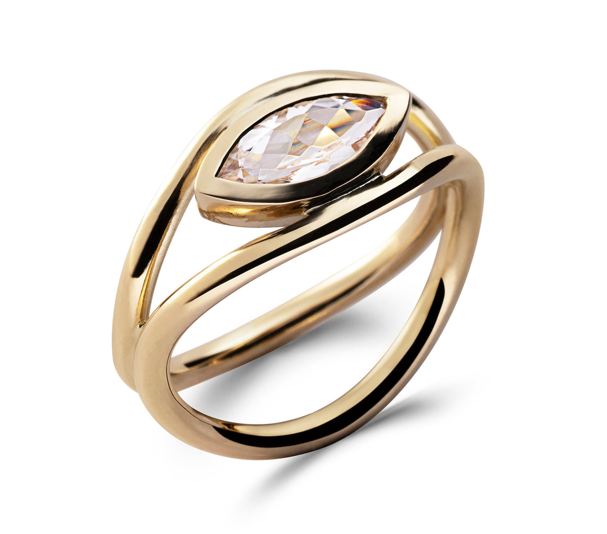 This gorgeous morganite ring in 18k gold belongs to The Drop Collection. Reinventing the droplet each season is a theme Caroline holds so dear and masters so delicately. Water is her favourite element and it is where her creativity finds its source. The resulting designs are timeless, refined and sensual.