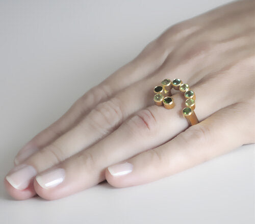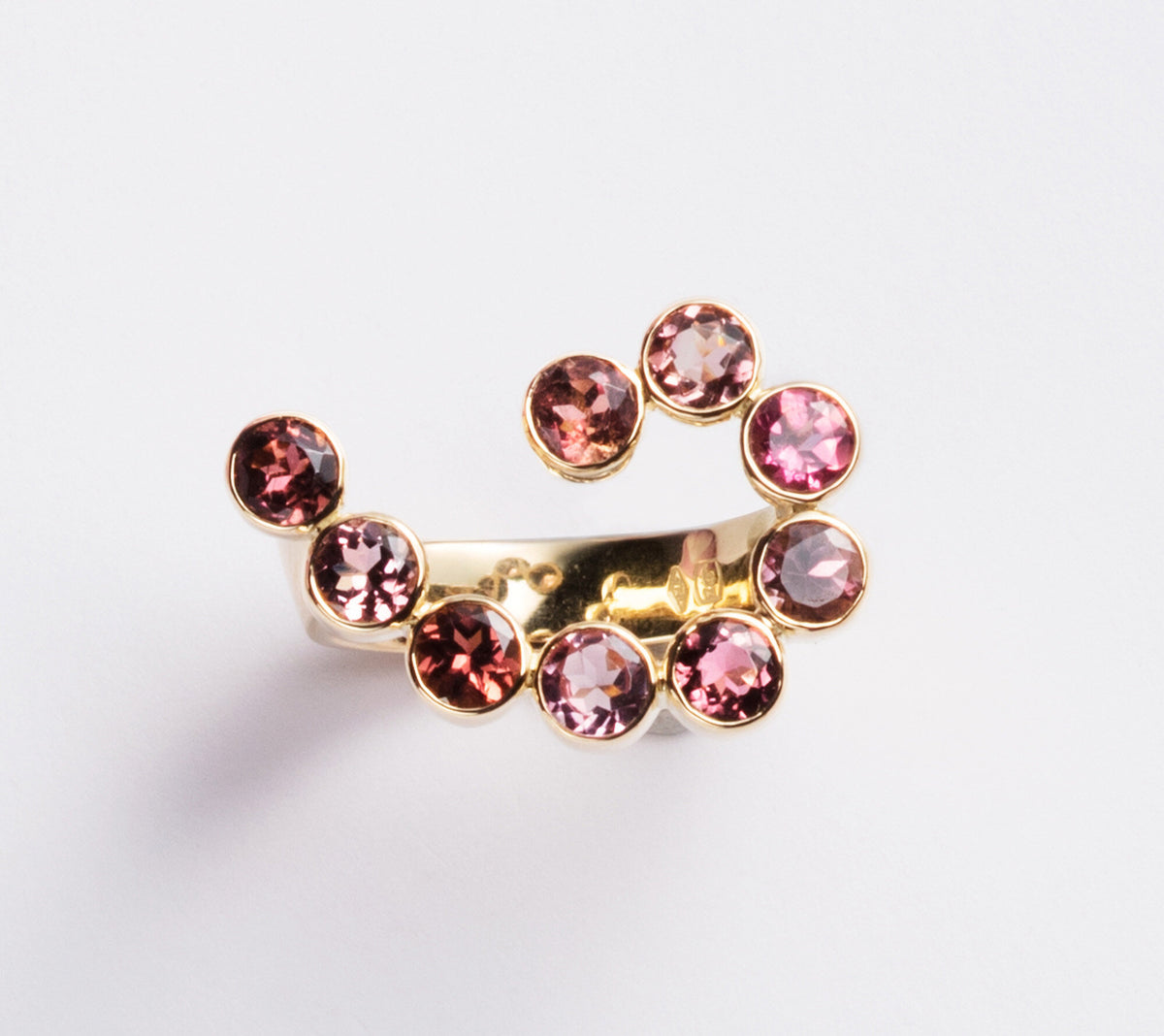 Featuring pink or green tourmalines in 18k gold, this beautiful ring belongs to The Drop Collection. Reinventing the droplet each season is a theme Caroline Swolfs holds so dear and masters so delicately. Water is her favourite element and it is where her creativity finds its source. The resulting designs are timeless, refined and sensual.