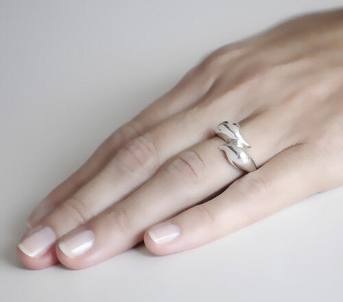Sterling silver. Also available in 18k yellow or white gold.Dimensions: The top of the ring has a size of 19 mm by 10 mm. The back of the ring is 3 mm wide.