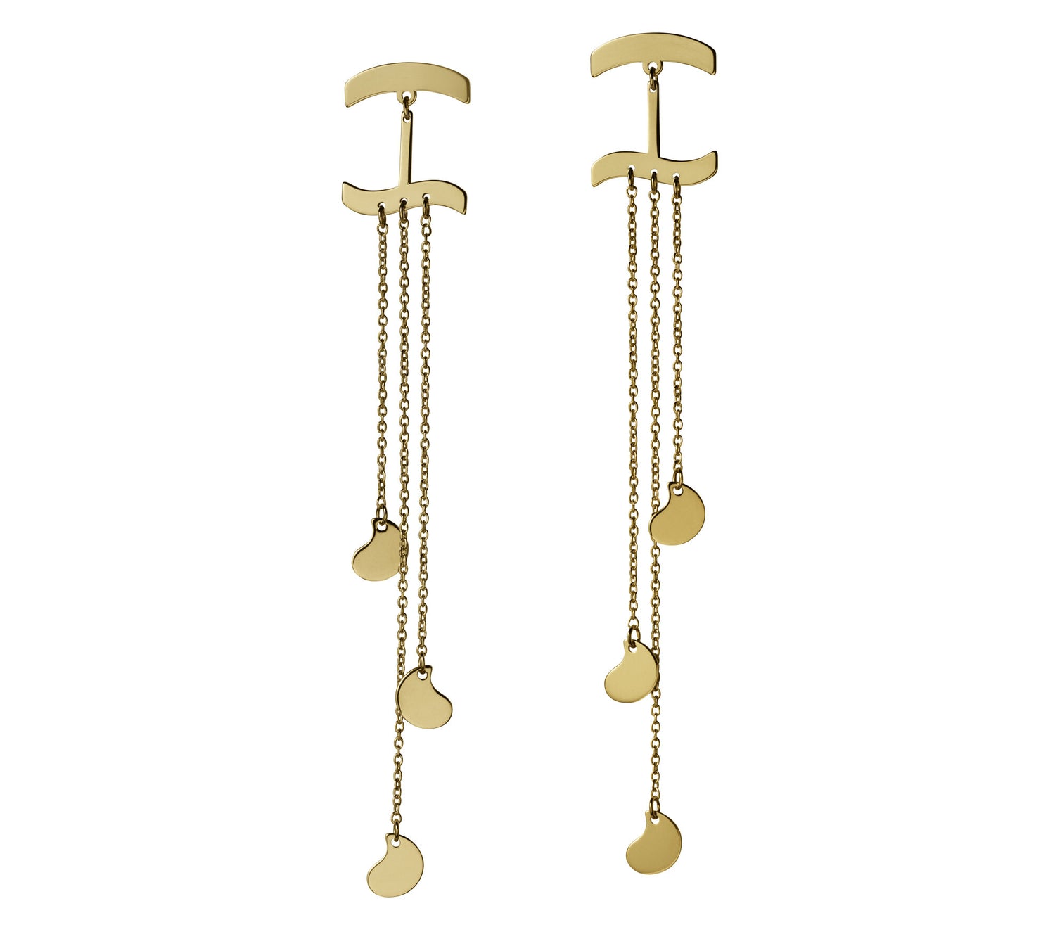 9k yellow gold or sterling silver.Dimensions: Each little drop has a size of 6 mm by 5 mm. The earrings are 7.5 cm long.