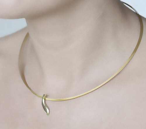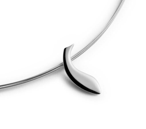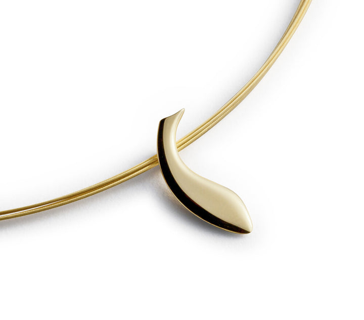 The pendant is in 18k yellow or white gold, or sterling silver. The chain is made of steel, five wires and gold plated for the 18k yellow gold version.Dimensions: The pendant has a length of 22 mm and a width of 6 mm.