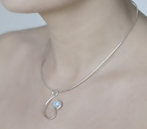 Sterling silver with an amethyst. Also available with a citrine, garnet, onyx, pink quartz, smoky quartz or topaz.Dimensions: This pendant is 35 mm long and 22 mm wide. The semi precious bead is 8 mm.