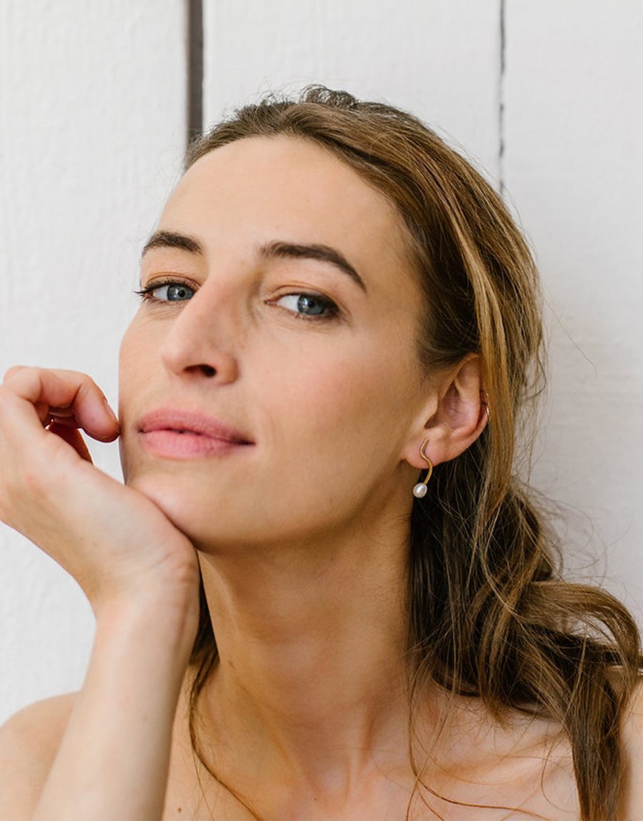 For her Path of Life collection, Natalie Schayes has designed a contemporary earring with a pearl at the end. The designer likes using the pearl in a modern way in order to make it ultra-desirable. To offer a different look, this earring can be worn with the pearl facing up inside the ear or down. Wear this model as a pair or as a mono earring. Sold individually.