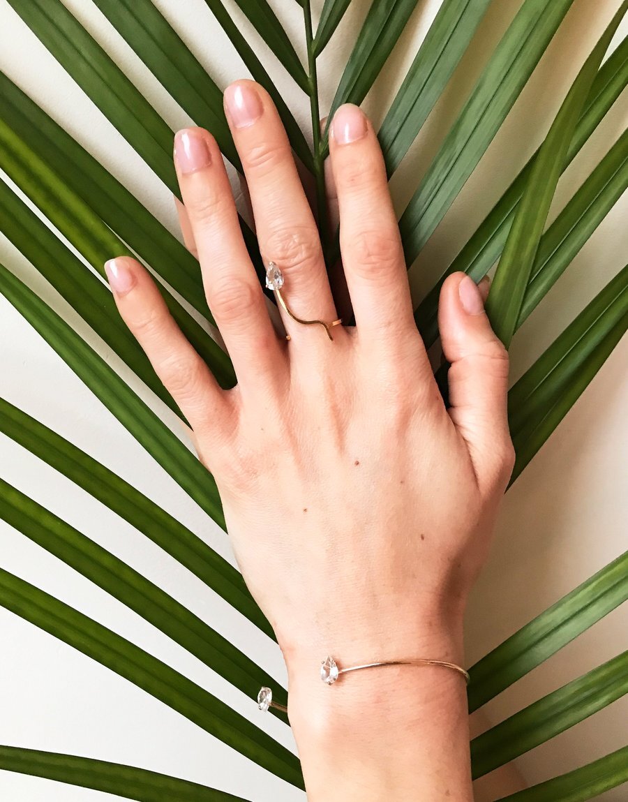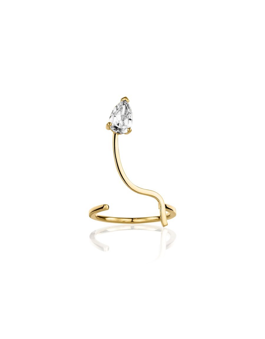 For her Path of Life collection, Natalie Schayes has designed a contemporary ring with a white topaz stone at the end. As a contemporary jewelry designer, she imagined a ring that wraps around the finger in a minimalist and unexpected way. The stones are placed where you wouldn't expect them to be, giving the illusion of a stone that levitates between your fingers. The topaz stone will illuminate your hand with elegance and finesse.