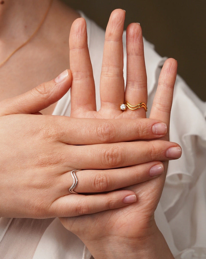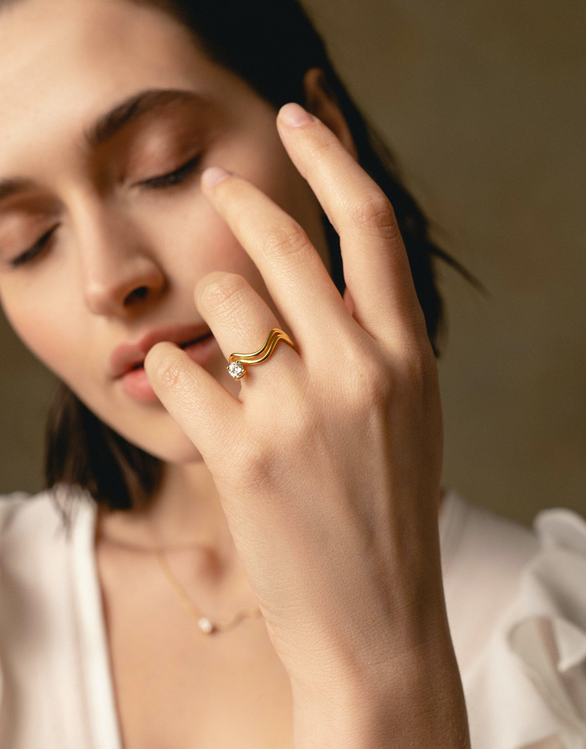 For her Path of Life collection, Natalie Schayes has designed a 18k yellow or white gold ring set with a solitaire diamond. The designer imagined a precious and wavy beauty with a precious stone. As a new and contemporary version of the solitaire ring, you can wear the stone on both sides of the finger for a different look. This minimal ring can be perfect as a modern engagement ring. You can stack it with the Petite Comete band ring of the same collection.
