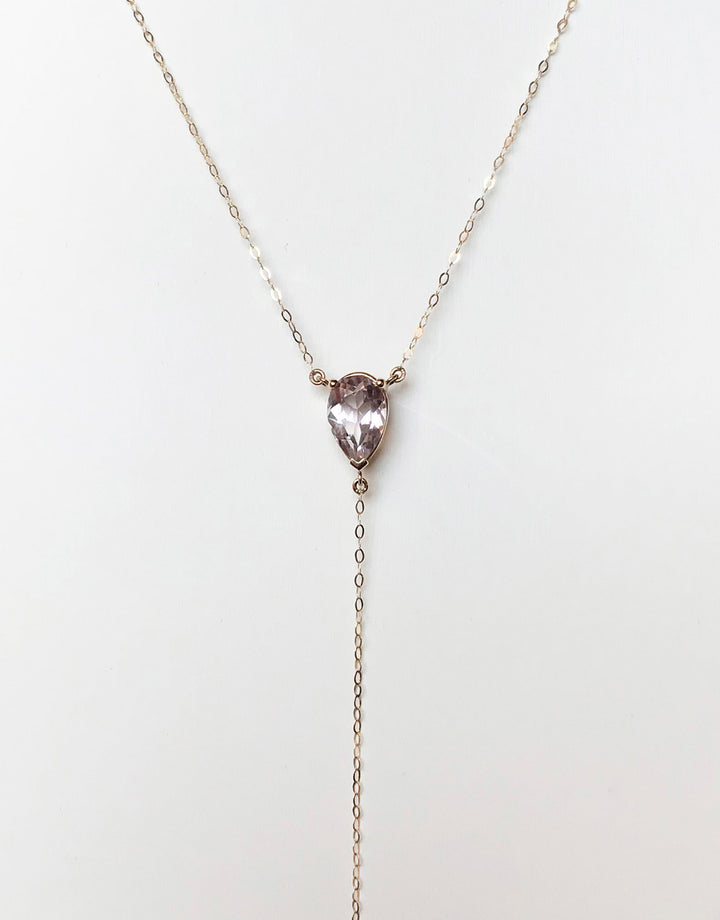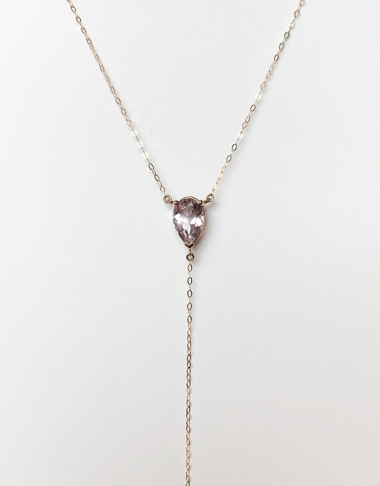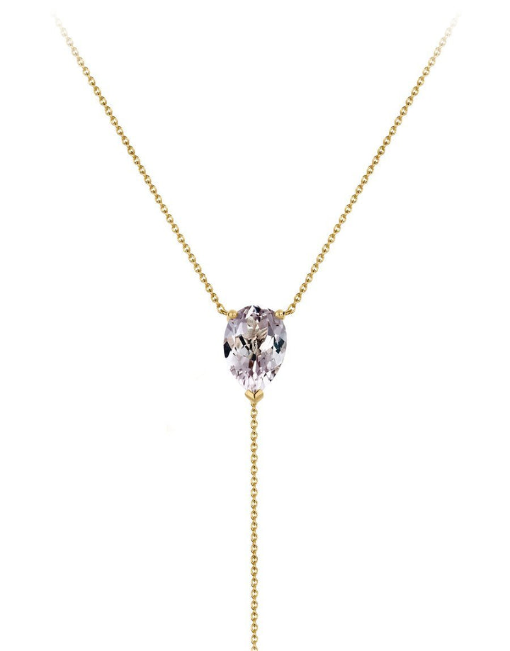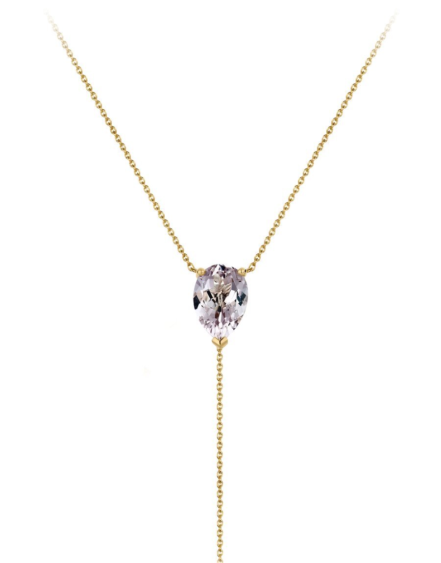 9k yellow gold with a pale pink-purple pear-shaped amethyst stone, 2.98 cts.Dimensions: Adjustable chain length: from 40 to 45cm. Drop of pendant and hanging chain: 25cm.