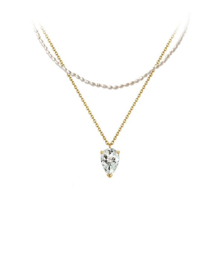 The first necklace is crafted with white freshwater pearls. The second necklace is crafted in 9k yellow gold and set with a light green pear shaped amethyst, 2.98 cts.Dimensions: Chain and pearl length: 40cm.