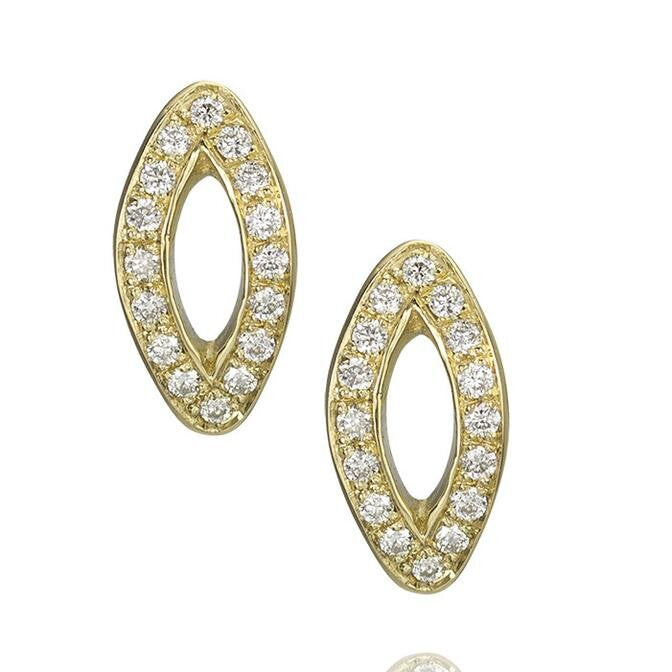 The all seeing eye of beauty is reflected in these gentle 18K gold stud earrings enhanced by delicious white pavé set diamonds.
