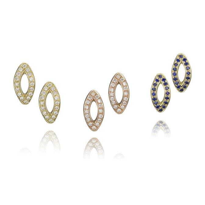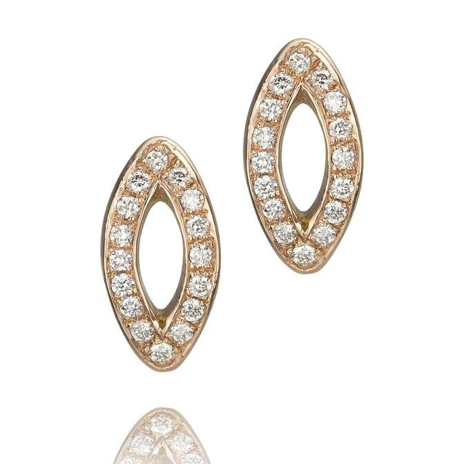The all seeing eye of beauty is reflected in these gentle 14k rose gold stud earrings enhanced by delicious white pavé set diamonds.