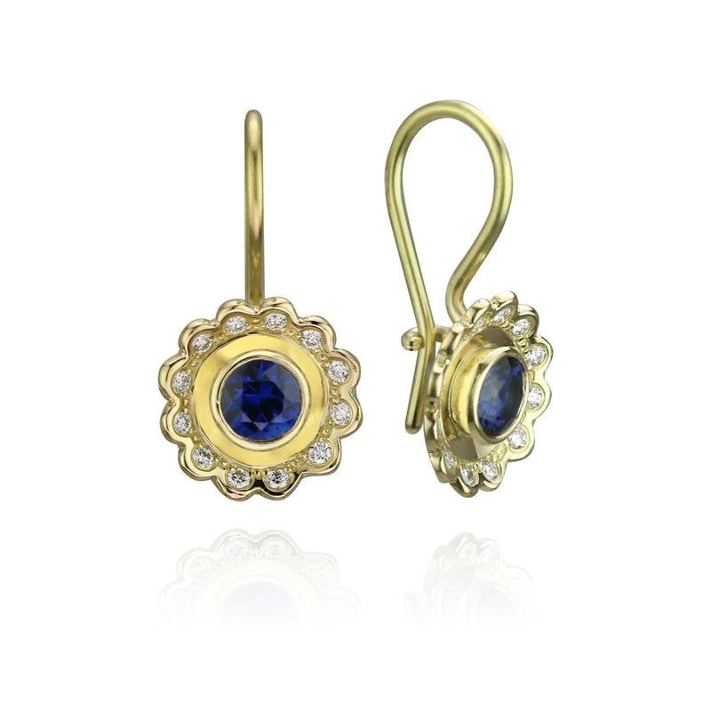 Lace Flower Earrings with Sapphires and Diamonds