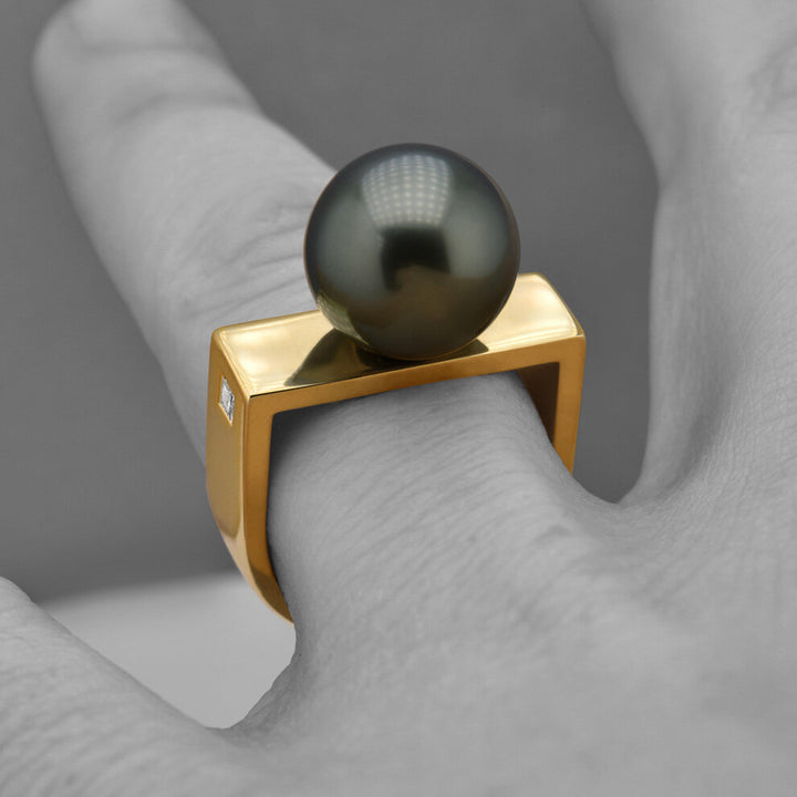 The pearl is the queen of gems and the gem of Queens. Daniela Komatović's Queens collection pays tribute to the great women that significantly influenced our history. It is dedicated to innovators who succeeded in positions that belonged mostly to men and to visionaries who were able to implement their dreams and ideas. The connection between beauty, tenderness, strength, determination and bravery inspired Daniela to create a unique collection for true Queens. Make a statement with the Eakatarina Ring, made of 14k yellow gold with a Tahitian pearl and a princess cut white diamond.
